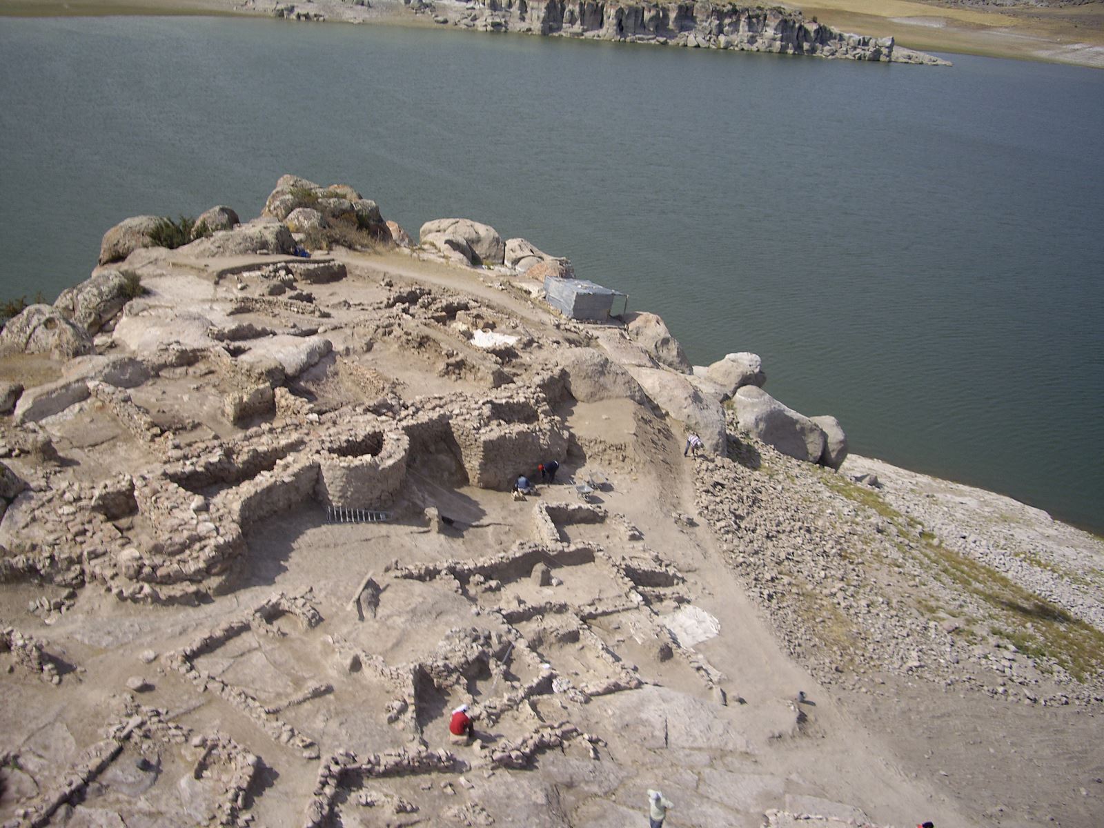 Köy, kayalığın zirve düzlüğünü kuzeyden kapatan sur duvarlarıyla iç kale ve aşağı yerleşme olarak ikiye ayrılmıştır. Ağır bir yangınla sonlanan iç kale konutları, aşağı yerleşme konutlarına göre daha büyük ve buluntular açısından da daha zengindir. Önceden planlanarak yaşama geçirilen mimarisi, günümüz sıra evlerini anımsatmaktadır. Yerleşme düzeni kayalığın doğal yapısıyla uyumlu, sokaklarla birbirinden ayrılan, konut adaları içinde düzenlenmiş, dar uzun, 20-30 metrekarelik tek odalı evleri yansıtmaktadır. Duvarlarını ortaklaşa kullanan bu evlerin arka bölümünde bir ailenin ihtiyacı olan zahirenin saklandığı kiler bölmesi yer almaktadır. Çifte kulesi ile kayalığın zirve düzlüğünü teras ve yamaç konutlarından ayıran sur duvarı sınıfsal ayrışmanın başladığının somut örneğidir. Zirve düzlüğünü güneyden ve batıdan çeviren sarp kayalık da doğal bir koruma hattı niteliğindedir.