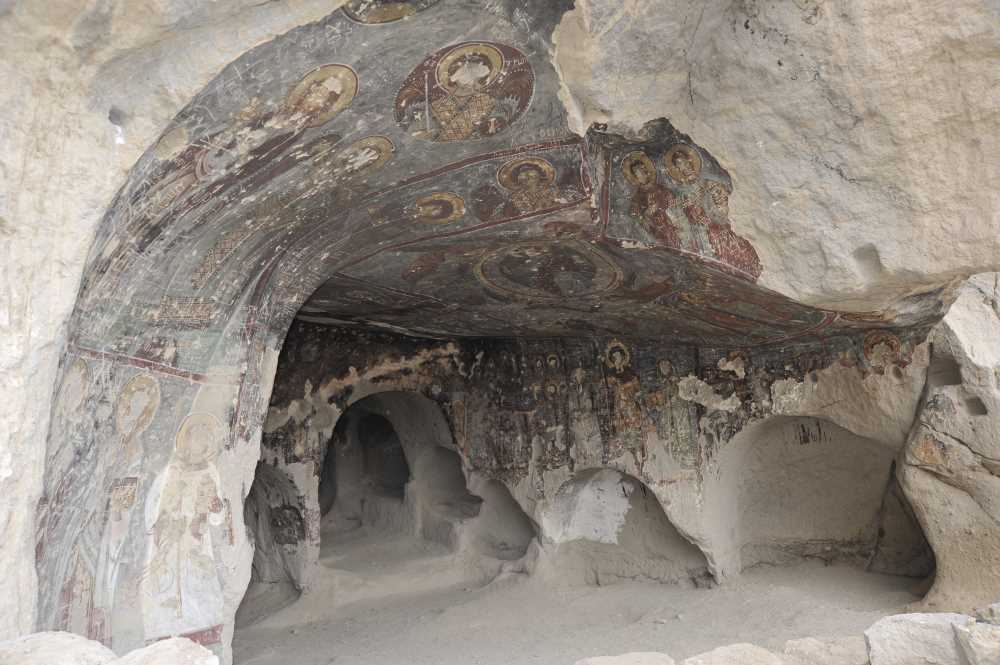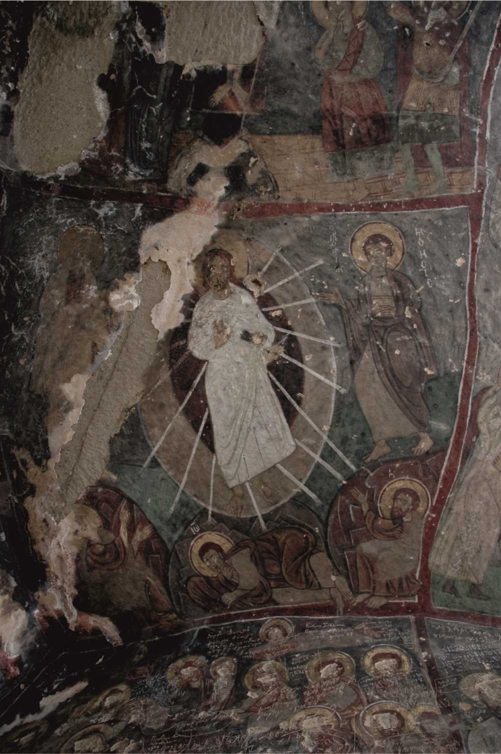 Kilisenin tavanındaki diğer bir kitabede bu yapıya bağışladığı araziden söz edilmektedir: "Ben naçiz Tamara, yaptırdığım bu tapınak için yamaç üzerindeki bir üzüm bağının arazisini, Şiara Phatenes'ten satın almış olduğum bağı bağışlıyorum." Bani freskosunun sağındaki mezar nişinde ise, kısmen silinmiş üçüncü bir kitabe yer alır: "Ruhumu günahlardan arındır, öyle ki, bir din adamının ruhu kadar arındır. ... senin hizmetkârın..." ifadesi yer almaktadır. Sol tarafı yıkılmış apsis kubbesinde Deesis sahnesi; alttaki şeritte Piskopos Athenogenes, Blasios, Nikolaos ve Diakon Stephanos; zafer kemeri içinde Kosmas, Damianos, Thalelaios ve Rafael; kuzeydeki kapı alınlığında Georgios; tavanda kapı hizasında Sergios, Bakhos, Leontios; tavanda batıda Metamorphosis (başkalaşım); güneyde çarmıhta İsa; doğuda İsa'nın Göğe Yükselişi; kuzeybatı duvarda Georgios; baniler ve Georgios; Koimesis (Meryem'in ölümü); güneybatı duvarda (İsa’nın) Doğumu, Marina Belzebuth; güney duvarda Georgios ve Demetrios; ayrıca bazı aziz tasvirleri görülmektedir.