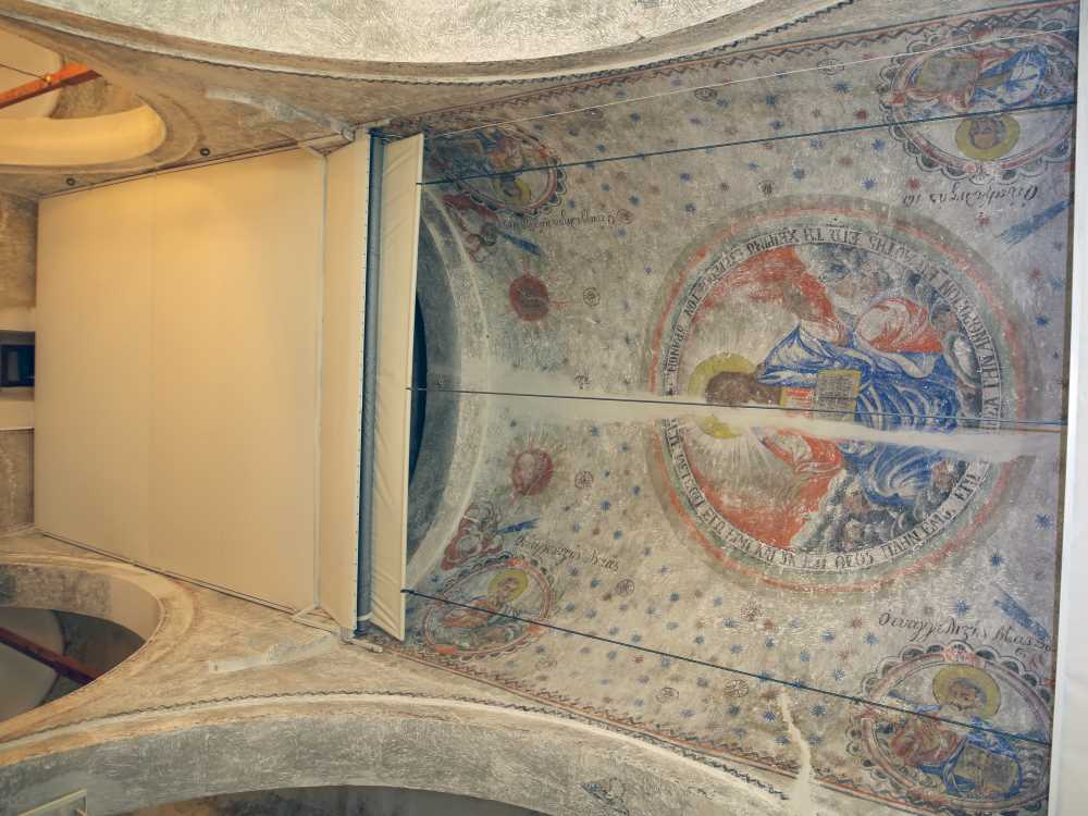 Kilisenin orijinal halinde yapının doğu cephesinde bulunan apsis kısmı yıkılmış ve düz duvar biçiminde kapatılmıştır. Güney duvarındaki mihrap nişi ise sonradan açılmıştır. İç mekanın en dikkat çeken yanlarından biri minber, vaaz kürsüsü ve mahfil bölümlerinde kullanılan ahşap işleridir. Bunlar kiliseden kalma orijinal ahşap işleme ve süslemelerdir. Caminin tavanında, önceleri üzerleri badanayla kapatılmış olan ancak sonraki restorasyonlarda badananın temizlenmesiyle ortaya çıkartılan Hz. İsa ve dört havarisi Matta, Markos, Yuka ve Yuhanna’ya ait figürler bulunur. Özellikle Hıristiyan ziyaretçilerin oldukça ilgisini çeken bu figürler, cami tavanına yapılan açılır kapanır bir sistem sayesinde sergilenebilmektedir.