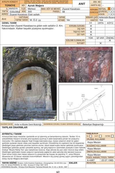 Amasya’daki kaya mezarları içerisinde en iyi işlenmiş ve tamamlanmış olanıdır. Yerden 10 m.