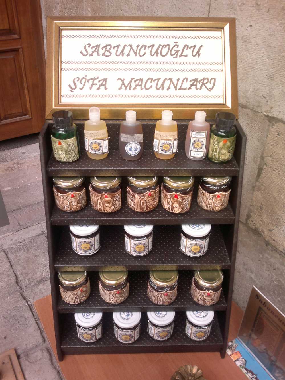 Sabuncuğlu Şerefeddin Tıp ve Cerrahi Tarihi Müzesi'nde (Darüşşifa) satışa sunulan ve her biri değişik hastalıklara şifa olan macunlar bulunmaktadır.