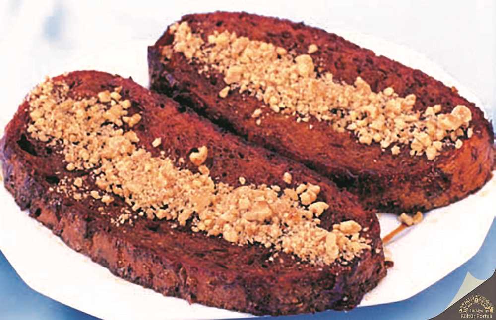 Pekmez şekerle birlikte şurup haline gelene kadar pişirilir. Dilimlenmiş ekmekler içine atılır. İki tarafı pişirilir. Bir kevgirle ekmekler şerbetten alınır. Üzerine ceviz dökülerek servis yapılır. Afiyet olsun.