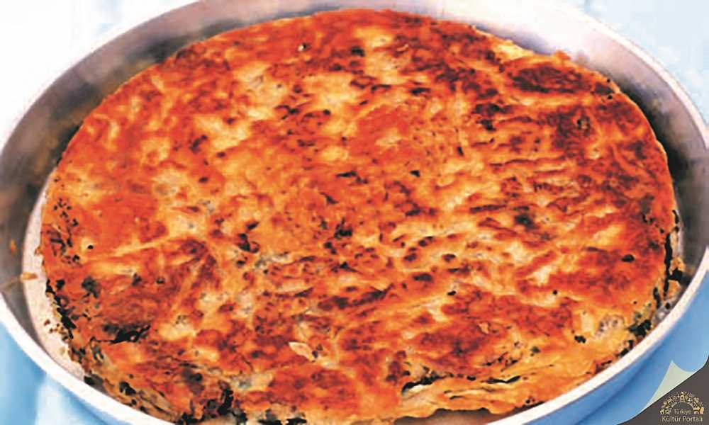 Un, su ve tuz birlikte yoğrularak kulak memesi yumuşaklığında hamur yapılır. Hamur 1,5 cm kalınlığında oklava ile açılıp üzerine eritilmiş tereyağ sürülerek rulo şeklinde kapatılır. Rulo hamur üçe bölünür. 3 beze haline getirilir. 3 bezede ayrı ayrı oklava ile sini büyüklüğünde açılır. Yağlanmış tepsiye açılmış hamur yerleştirilir. 1. ve 2. yufkanın arası yağlanarak 2. yufkanın üzerine çırpılmış yumurtalar dökülür ve dağıtılır. Üçüncü yufkada üzerine serilir. Üzeri eritilmiş tereyağ ile yağlanır. Ocakta sini döndürülerek kızartılır. Böreğin altı kızartıldıktan sonra üstü aynı şekilde kızartılır ve servis yapılır.