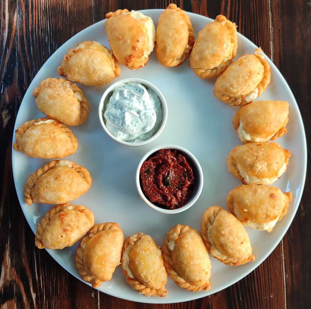 Un, yumurta ve tuzunu karıştırıp yumuşak hamur yapılır. 10 dakika dinlendikten sonra, oklava ile açılan hamuru çay bardağı ile kesilir. İçine peynir koyup kenarları örgü şeklinde kapatılır. 220 derecede kızgın yağda kızartılır. Soslara batırılarak yenir.