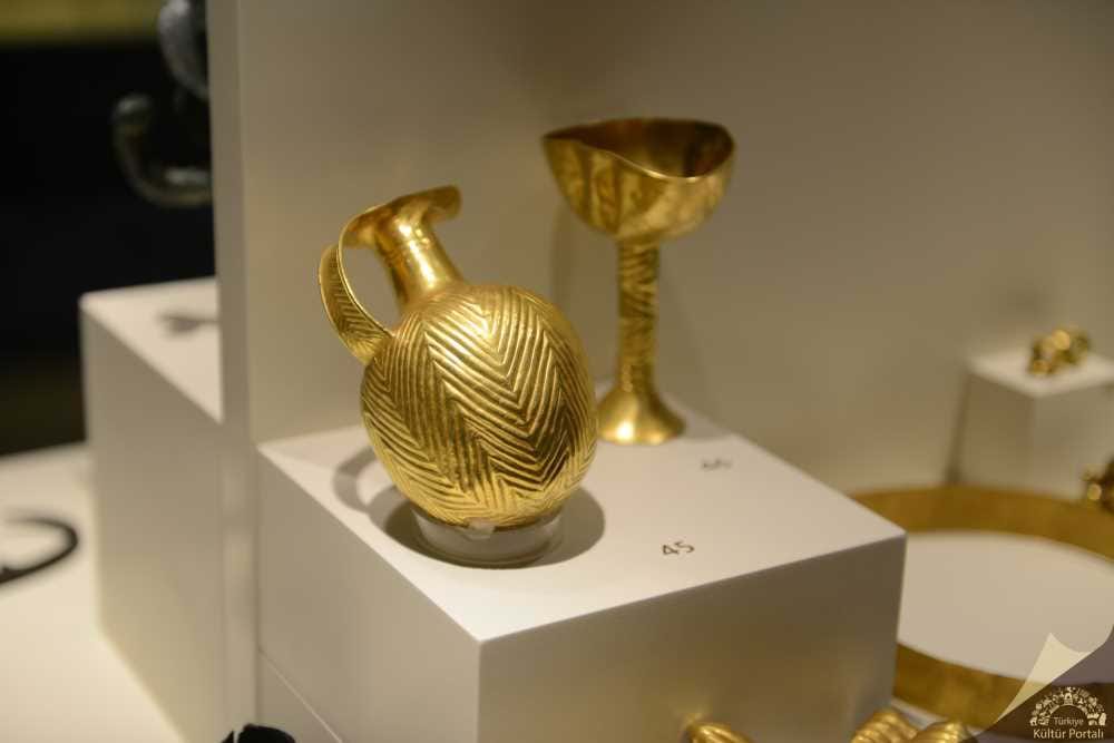Tunç kazanlar, hayvan başı şeklindeki situlalar, Friglere özgü fibulalar, omphaloslu phiale-göbekli taslar, ahşap servis masası ve hayvan biçimli minyatür oyuncaklar ile pişmiş toprak kaz biçimli ritonlar bölümün dikkat çeken eserleridir.