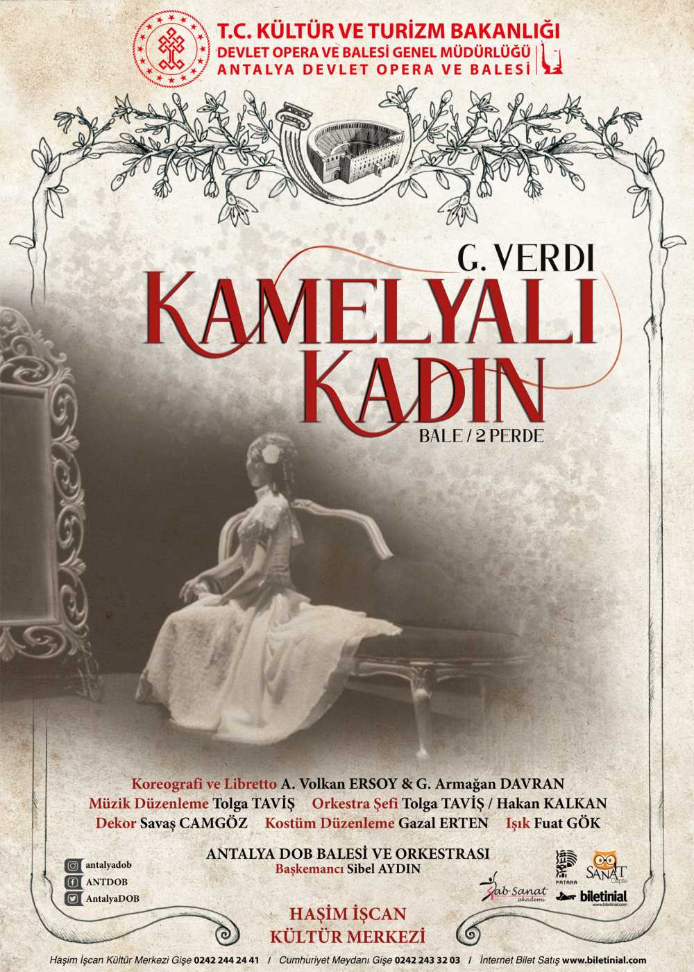 Fransız yazar Alexandre Dumas'nın oğlu Alexandre Dumas'nın (fils) 1848 yılında, henüz 24 yaşında yazdığı aynı adı taşıyan ilk romanından baleye uyarlanan "Kamelyalı Kadın"; Dumas'nın gerçek hayattaki sevgilisi Marie Duplessis'ten esinlendiği verem hastası Marguerite Gautier ile prestijli bir ailenin avukat oğlu Armand Duval'in tutkulu ve dramatik aşkını anlatmaktadır. Koreografisi Volkan Ersoy ve Armağan Davran'a ait olan balenin müzikleri, Giuseppe Verdi'nin bilinen eserlerinin yanı sıra, Türkiye'de daha önce hiç icra edilmemiş eserlerinden de seçilerek Tolga Taviş tarafından düzenlenmiştir.