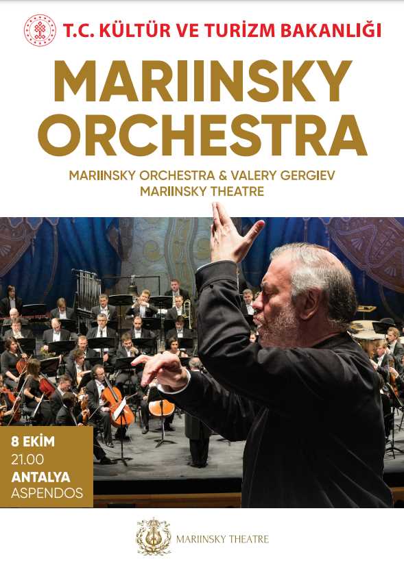 240 yıllık köklü tarihi ile dünyanın önde gelen sanat kurumlarından biri olan Mariinsky Orkestrası, T.C. Kültür ve Turizm Bakanlığının davetlisi olarak Türkiye'de sahne almaya hazırlanıyor. 8-11 Kasım tarihlerini kapsayan Türkiye turnesinde ilk konserini 8 Ekim Pazar akşamı Antalya Aspendos Antik Tiyatrosu'nun etkileyici atmosferinde verecek olan orkestra, benzersiz bir müzik şölenine imza atacak. Her sezon gerçekleştirdiği 200’den fazla konser ile dünyaca ünlü şefler arasında rekor kıran Valery Gergiev ile birlikte zengin opera ve bale repertuvarına geniş bir senfonik yelpaze ekleyen topluluk, Aspendos Antik Tiyatrosu konserinde müzik tarihinin en popüler başyapıtlarından oluşan özel bir repertuvar ile sahne alacak. Aspendos'un büyülü atmosferinde verilecek bu özel konserin biletlerini, biletinial.com çevrim içi adresi ve Sanat Cepte mobil uygulaması üzerinden temin edebilirsiniz.