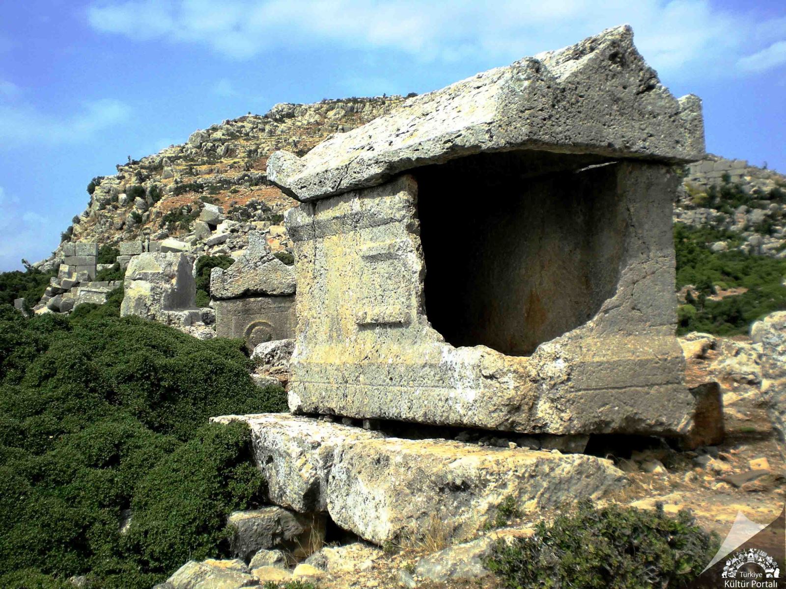 Şehir yerleşimi ile bütünleşmiş olarak doğu ve batı tarafta iki nekropol alanı bulunmaktadır. Batı nekropolünün kuzey tarafında dokuz tane mozole tipi mezar vardır. Bunlar iki krepisli stylobat üzerine oturmuş ortostatlı bir podyum üzerine çift tonoz örtülüdür. Anteler arasındaki altı merdivenle lahdin bulunduğu odalara çıkılır. Batı nekropolünde dörtgen planlı bir veya iki basamaklı platformlar üzerine oturmuş doğrudan girişli, kırk adet basit yapılı mezar binası tespit edilmiştir. Doğu nekropolünde ise dokuz adet mezar yapısı karşımıza çıkar. Bunların dışında kireç taşından yapılmış, yanları tabula ansatalı, dar yüzleri Pisidia tipi kalkanlı lahitler ve doğrudan kayaya oyulmuş basit gömü şekilleri de kullanılmıştır.
