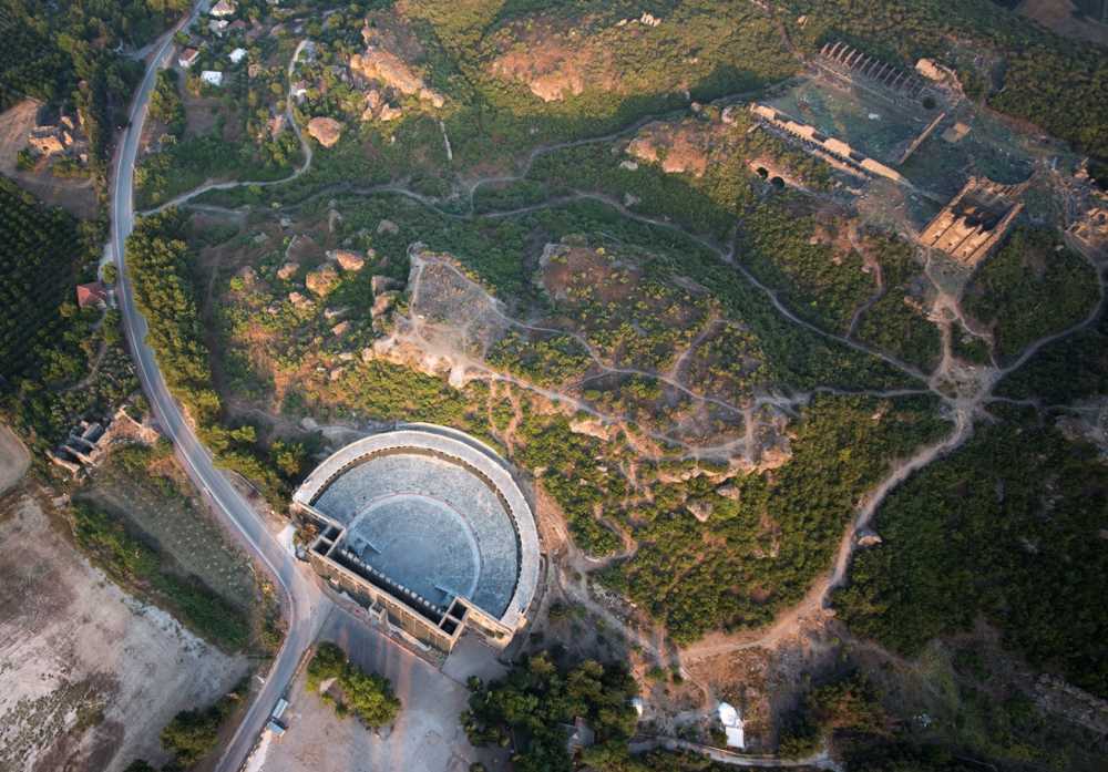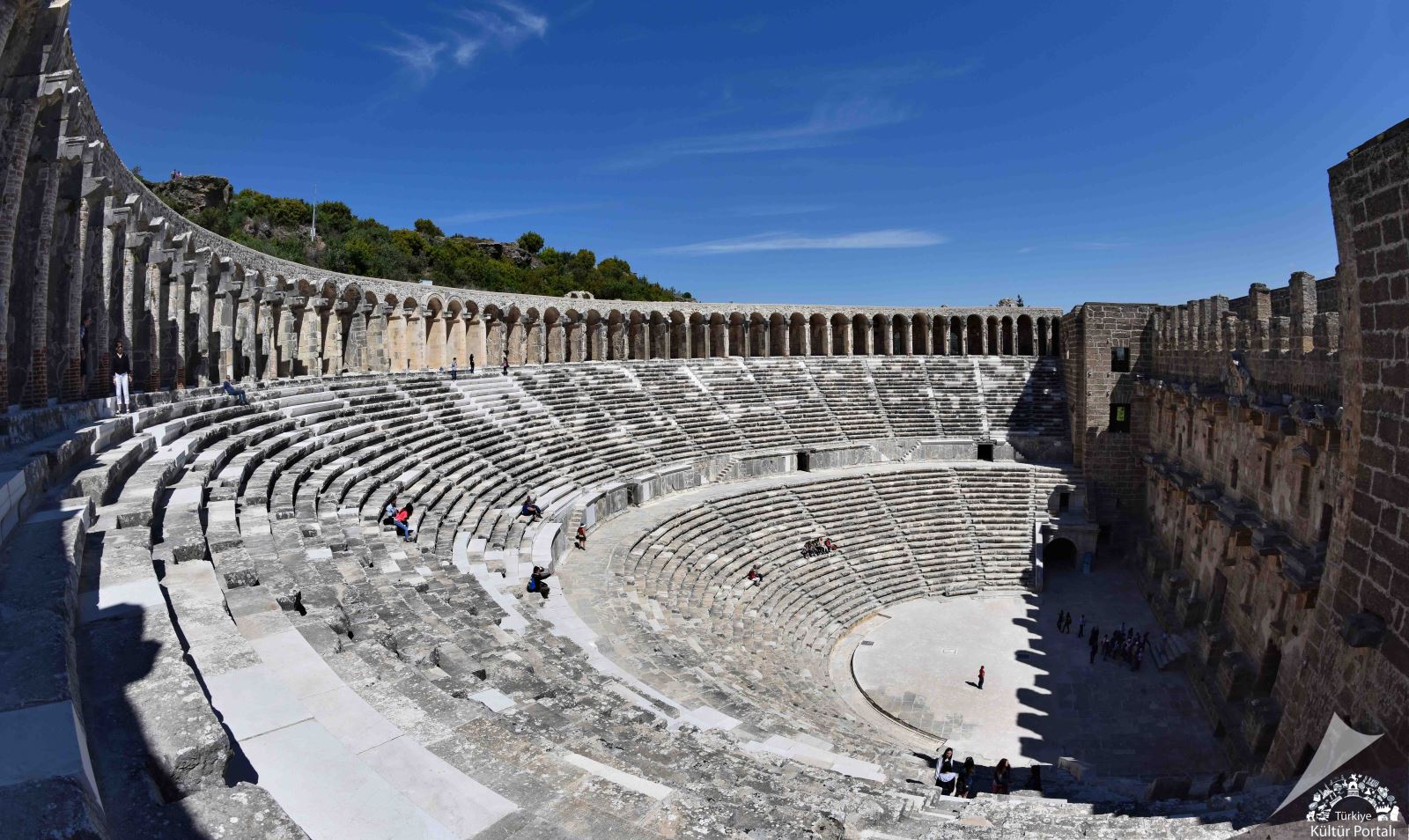 Aspendos Antik Kenti, sadece Anadolu’nun değil tüm Akdeniz dünyasının en iyi korunagelmiş Roma Dönemi tiyatrosuna sahip olmasıyla ünlüdür. Şehir, bölgenin en büyük nehirlerinden Köprüçay (Antik Eurymedon) yakınlarındaki bir tepenin düzlüğünde kurulmuştur. Akdeniz ile ulaşımını ve gelişmesini, yakınındaki nehre ve dolayısıyla çevresindeki bereketli topraklara borçlu olan Aspendos’ta bugün çoğunlukla tiyatro ve su kemerleri ziyaret edilmektedir. Şehre ait diğer yapıların kalıntıları ise tiyatronun yaslandığı tepenin düzlüğünde yer alır.