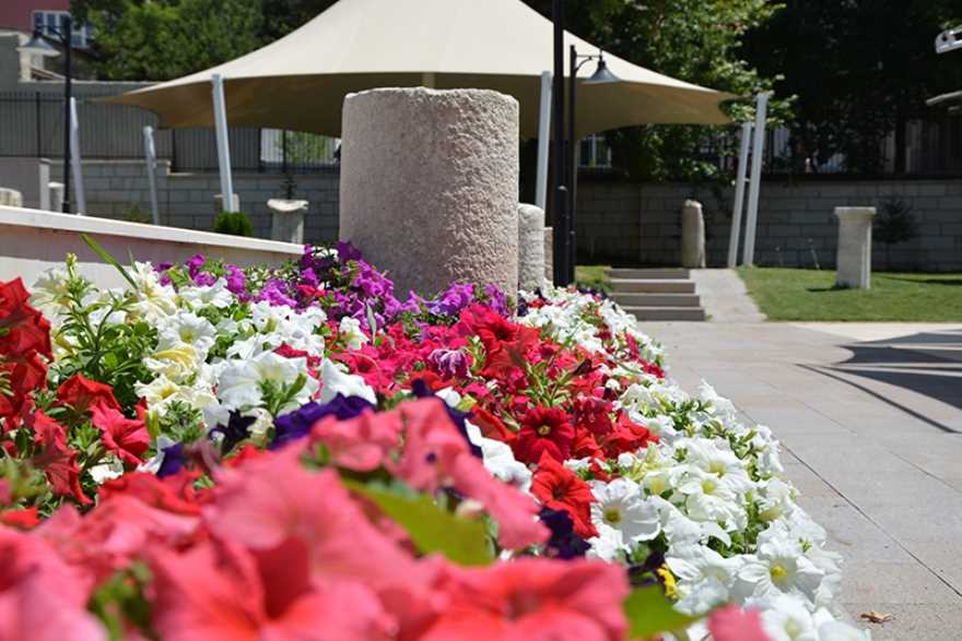 Müzenin açık teşhir alanı olarak kullanılan arka bahçesinde ise Helenistik, Roma, Bizans dönemlerine ait mezar stelleri, sütun parçaları ve mimari elemanlarla birlikte, bölgede arıcılığın geleneksel yöntemlerine ışık tutan bir "arı sereni" sergilenmektedir.