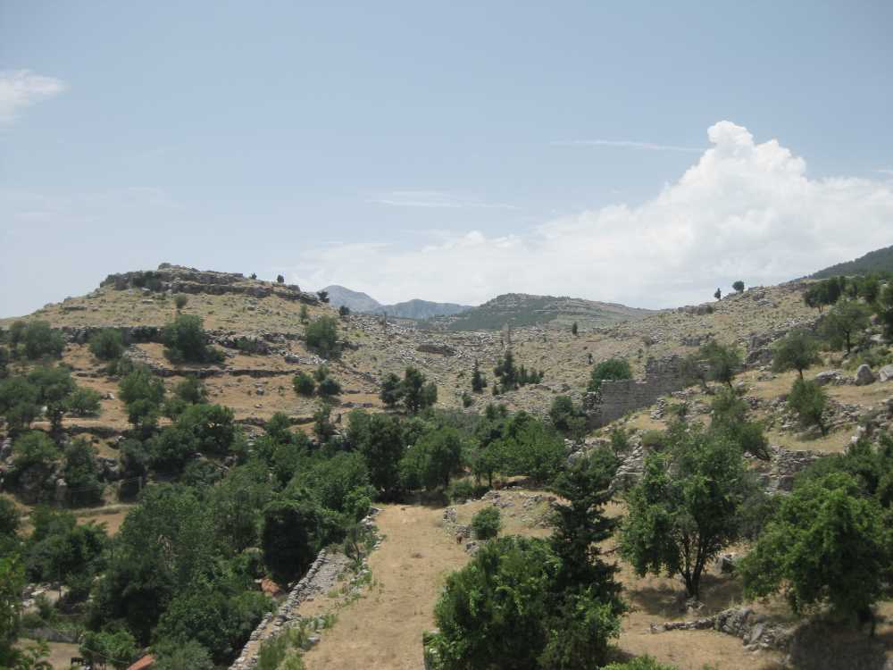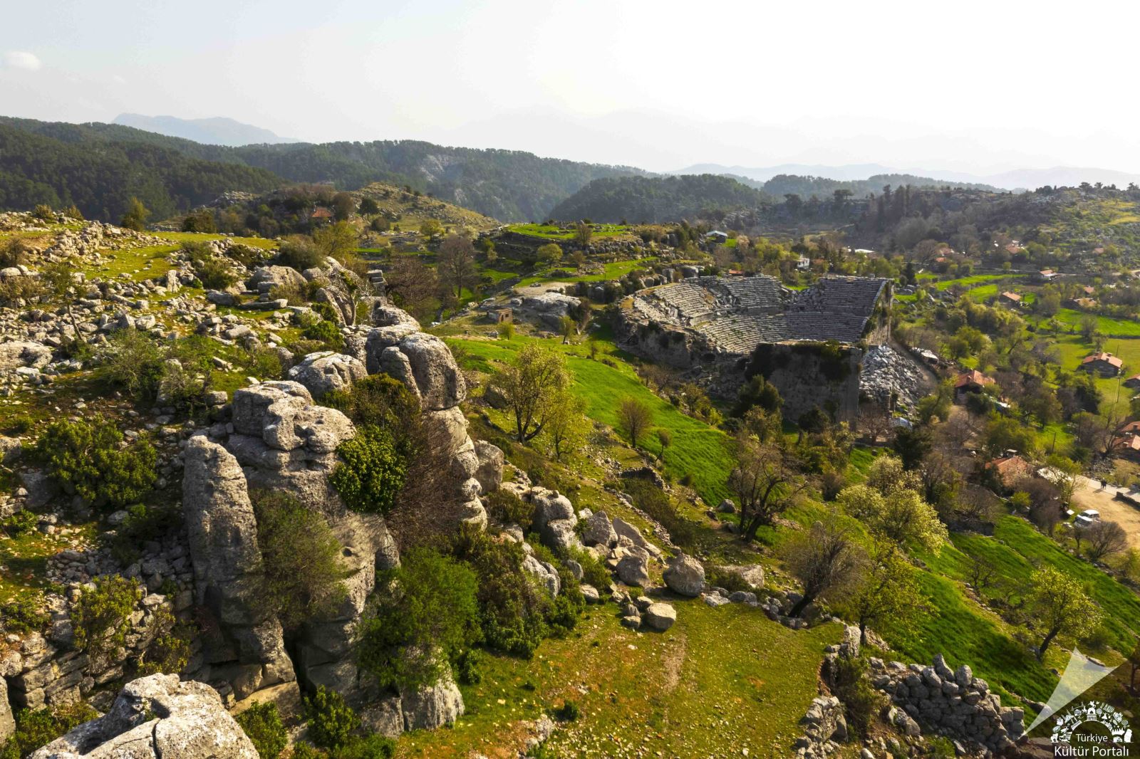 Bugünkü kent kalıntıları çoğunlukla surlardan ve akropolisten oluşmaktadır. Kentte günümüze ulaşan en sağlam yapı MS 3. yüzyılda restore edilen kayalığa oyulmuş tiyatrodur. Kentteki diğer kalıntılar arasında tiyatronun güneyinde stadium ve gymnasium, batısında tavanı kartal motifi ile süslü İon tipindeki tapınak ve stadiumun güneyinde çeşme ve agora bulunmaktadır. Kentin güneybatısında uzanan surların kuzeyinde ise Artemis ve Zeus anıtlarıyla kentin nekropolu yer almaktadır.