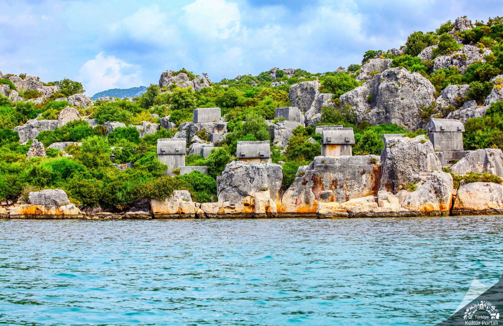 Kentin Tybersissos ile sınır oluşturduğu yerde yine bosajlı ve rektogonal teknikte duvar örgülü bir akropol, son savunulacak yer olarak Tybersissos ile birlikte düşünülmüş olmalıdır. İskeleden doğuya doğru ilerlendiğinde sahilden biraz içeride ev tipinde, giriş kapısı tahrip olmuş bir çift kaya mezarıyla karşılaşılır. Doğu tarafta bulunan mezarın sağ yanında ayakta duran genç bir erkek veya çocuk figürü görülür. Kapının üst kısmında da mezar sahibinin Kluwanimi olduğunu bildiren Lykia dilinde bir yazıt vardır. Mezar binasının doğusunda iki yanı kesme taş duvarla örülü kanalın çevresinde çok sayıda Geç Helenistik ve Roma Çağı’na ait lahitler sıralanmaktadır. Bu kanalın bitim yeri yani kuzey ucu ne amaçla kullanıldığı kesin olarak belli olmayan bir Erken Bizans Dönemi yapısıyla sona ermektedir.