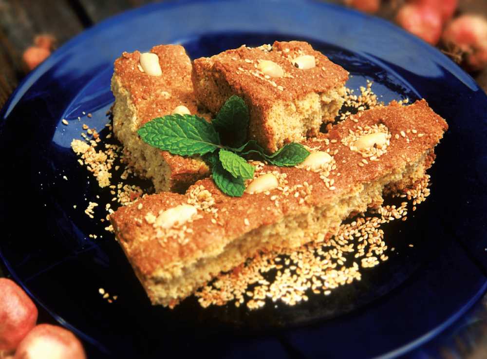 - Hazırladığınız karışımı, dibi yağlanmış fırın kabına aktarınız. Yaklaşık 1,5 parmak kalınlığında olacak şekilde yayınız. Üstünü düzeltiniz ve susamı serpiştiriniz. 30 dakika dinlenmeye bırakınız.