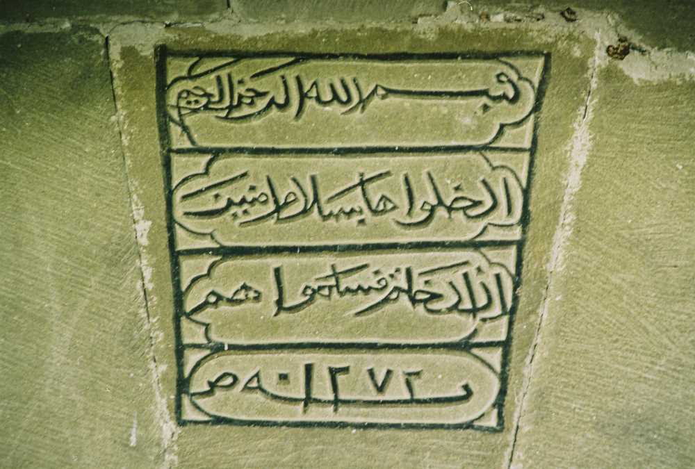 Caminin giriş kapısı üzerinde kitabesi mevcuttur. |