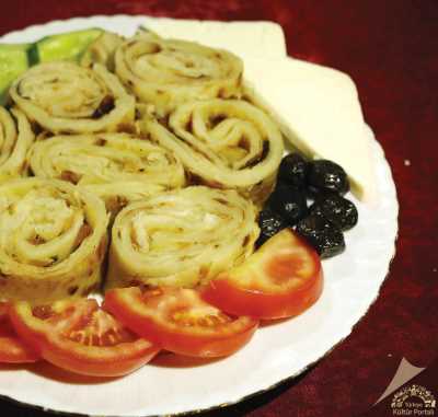 Bütün malzemeleri karıştırarak ele yapışmayacak bir kıvama gelene kadar yoğurunuz ve hamuru dinlendirmeye bırakınız. 20 dakika dinlendirdikten sonra hamurun ortasına bir delik açınız, sıvı yağını döktükten sonra yoğurmaya devam ettikten sonra yoğurmaya devam ediniz. Tekrar dinlenmeye bırakınız.( 20 dk) Hamuru 3-4 parçaya bölerek oklavayla açınız. Oklavanın yapışmaması için un kullanınız. Sacın üzerinde çevirmek suretiyle pişiriniz. Süt, sıvı yağ ve ince doğranmış fesleğenler ile hazırladığınız sosu hamurlar piştikten sonra üzerine fırçayla sürerek servis ediniz.