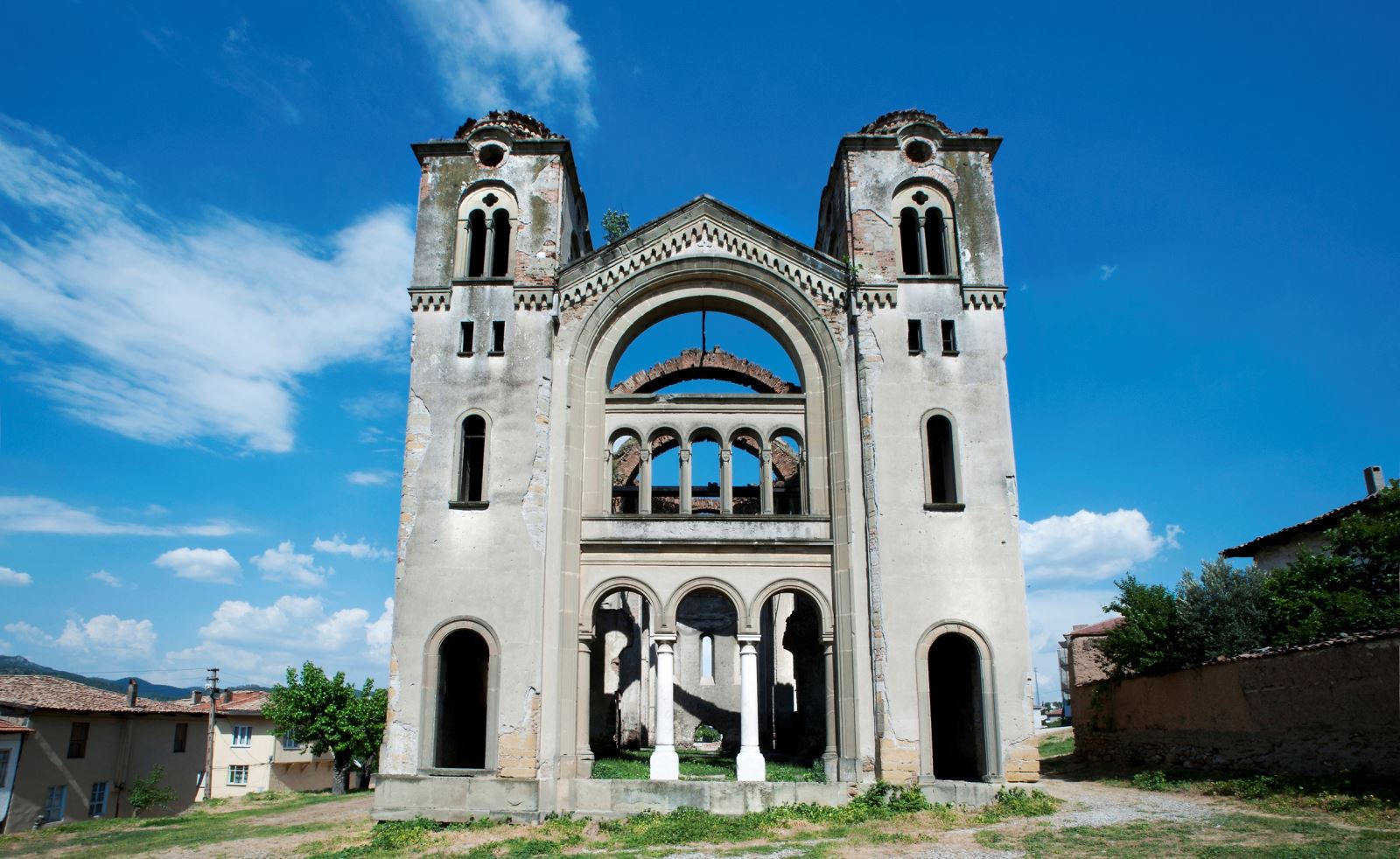 Ön cephenin iki köşesinde birer çan kulesi yükselmektedir. Bina, Ortaçağ kiliselerinin XIX. yüzyıl sonlarına doğru yapılmış bir taklididir.