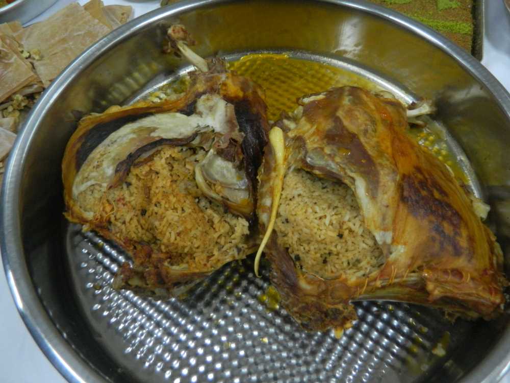 Kaburgayı keskin bir bıçakla enine doğru keserek içinde pilavın konulacağı cebi açın. Kuşüzümünün sapını çöpünü ayıklayın. Ilık suya koyup bekletin. Ciğeri küçük küp biçiminde doğrayın, bir kenarda bekletin. Soğanları incecik kıyın, dolmalık fıstıkla ikisini kalın tabanlı yayvan bir tencereye koyun. Biraz tuzla birlikte soğanlar altın sarısı renk alana kadar 3 çorba kaşığı tereyağında kavurun. Ciğeri ilave edin, renk değiştirinceye kadar kavurmayı sürdürün. Bunun üzerine suyu süzülüp iyice yıkanmış pirinç ve bir tutam tuz ilave edin. 1-2 dakika çevirdikten sonra 4 su bardağı su ve baharatı ilave edin. Kuşüzümünün suyunu süzüp pilavın üstüne serpeleyin. Kapağını kapatın. Çok kısık ateşte pilav suyunu çekip göz göz olana kadar pişirin. Hazırladığınız pilavı kaburganın içindeki cebe doldurun. Pilav miktarını çok iyi ayarlayın; çok doldurursanız patlayıp pirinçler tencereye saçılabilir, az doldurursanız kaburga içine su alabilir. Pirinçlerin dağılmaması için cebin ağzını kalın bir iplikle dikin. Etin üzerine salça sürün. Kaburganın rahatça sığabileceği büyüklükte bir tencerede 1 çorba kaşığı tereyağını eritin. Kaburgayı önlü arkalı hafifçe kızartın. Önce kemikli tarafı alta gelecek şekilde tencereye yerleştirin. 3 su bardağı kaynar su ilave edin, tuzunu serpin. Kapağını kapatıp yaklaşık 1 saat pişirin. Diğer tarafını çevirin. İyice yumuşayana kadar yaklaşık 1 saat de diğer tarafını pişirin. Et tel tel ayrılacak kadar yumuşamış olmalıdır; çünkü kullanacağınız ete göre pişirme süresi değişebilir. Tenceredeki su azaldıkça azar azar kaynar su ilave edebilirsiniz.