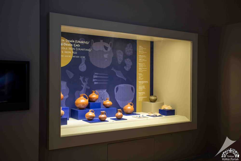Müzedeki eserler; Arkeolojik, Kentsel Bellek, Fuaye ve Bahçe olmak üzere 4 farklı alanda sergilenmektedir. “Arkeolojik Salon”da Kalkolitik Çağ’dan başlayarak, Erken Tunç Çağı, Orta Tunç Çağı, Geç Tunç/Erken Demir Çağı, Orta Demir Çağı (Urartu), Helenistik Dönem, Roma Dönemi, Doğu Roma Dönemi, Selçuklu Dönemi ve Osmanlı Dönemi’ne ait eserler sergilenmektedir.