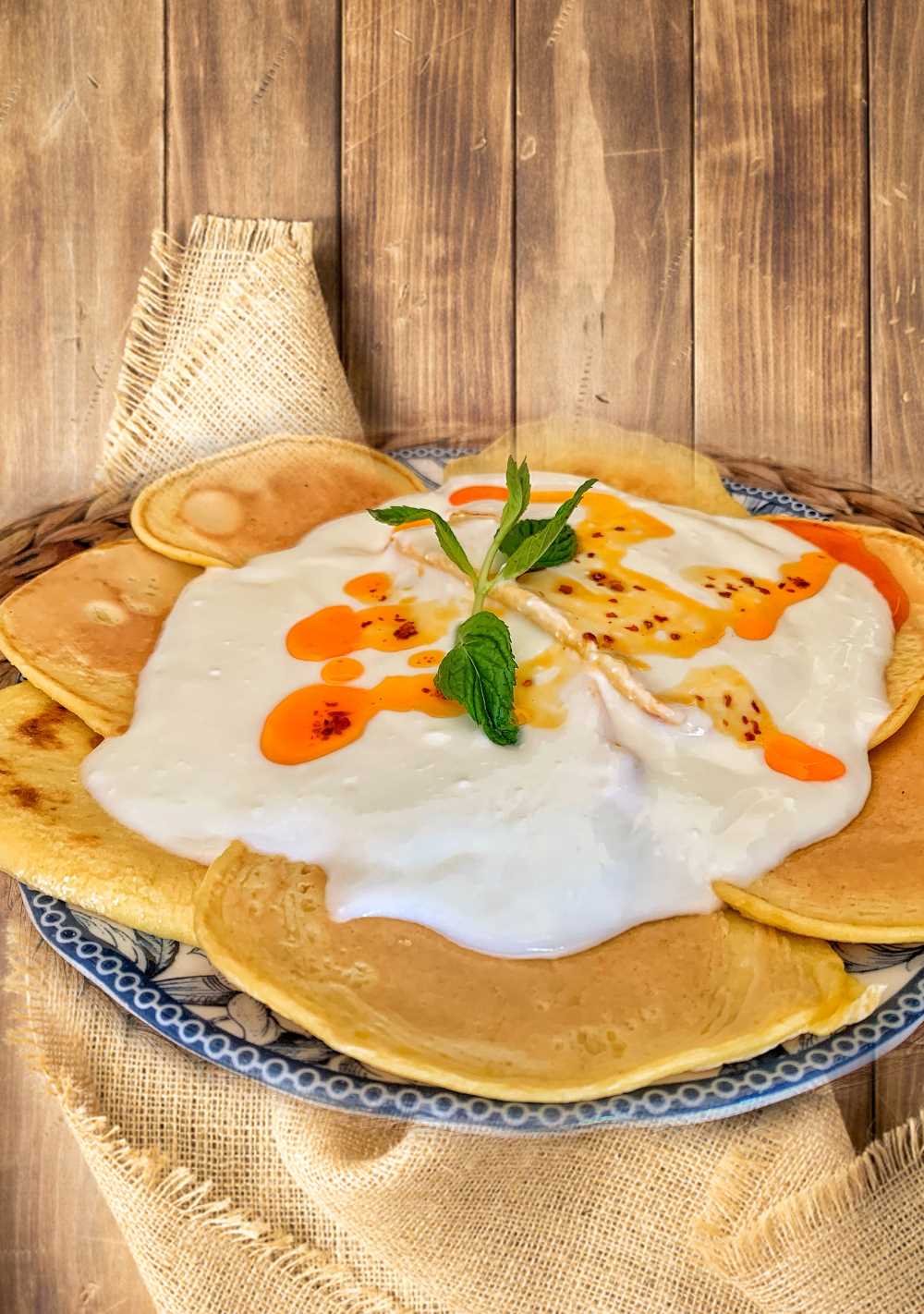 Yumurtaya un ve tuz eklenip macun kıvamında çırpılır. Dört beş bölüm halinde tereyağında iki taraflı kızartılır. Sunum tabaklarına alınıp üzerine su ile açılmış sarımsaklı yoğurt ve pul biberli tereyağı sos dökülür, nane ile süslenip sunulur. Ayrıca yöre mutfağında yumurtanın çırpılarak yağda pişirilmesi şekline kaygana, az haşlanmış yumurtanın ucunun açılıp kaşıkla yenilmesi şekline ise mıhla adı verilir.