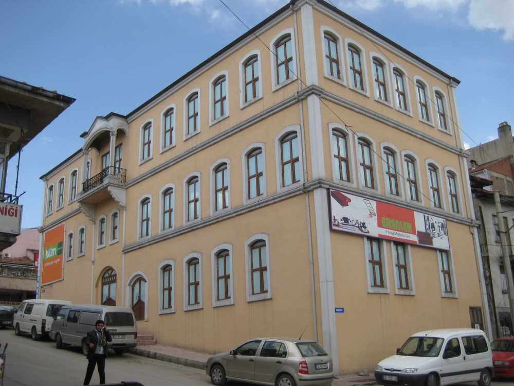 tarihlendirilmektedir. Gerede Caddesine bakan kısımda zemin kat ticarethane olarak kullanılmaktadır. Süreyya Sokağa bakan cephesinde ise biri daha küçük boyutlu olmak üzere kemerli ve camekanlı iki kapısı bulunmaktadır. Katlardaki bütün pencereler basık kemerli, geleneksel dikdörtgen boyutlu ve taş sövelidir. Üst katta giriş aksında taş konsollarla destekli balkon çıkması yer almaktadır. Balkonun köşelerinde yer alan sütunlar üçgen alınlığı desteklemektedir. Saçak altında ve kat aralarında profilli taş silmeler bulunmaktadır.