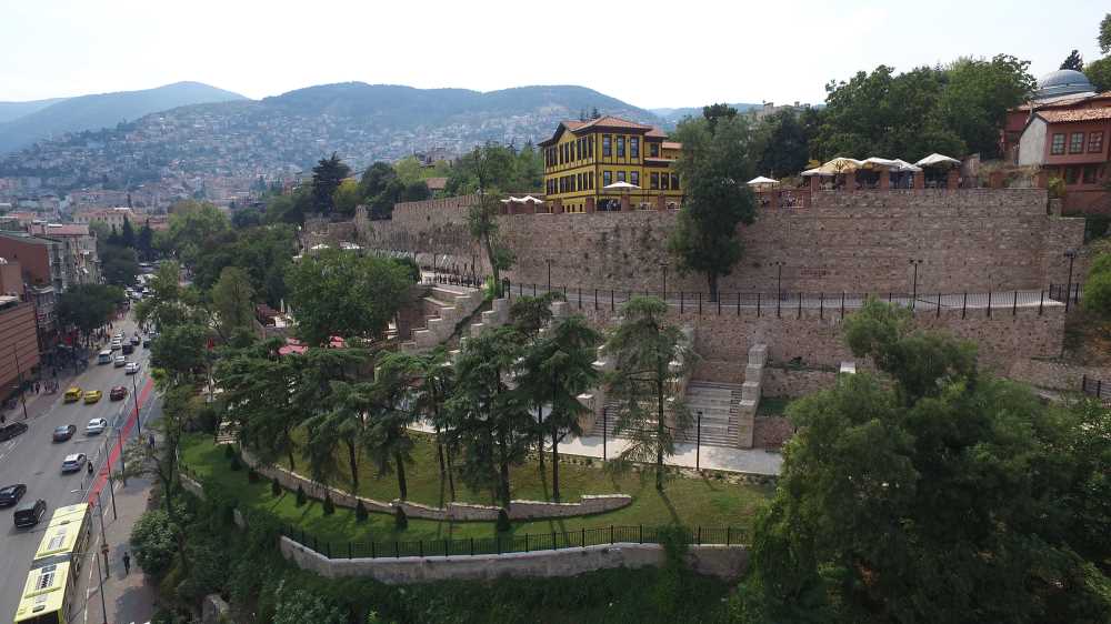 Bursa Surları doğal kayalıklar üzerine Bursa’nın ilk kurucusu olan Bitinyalılar tarafından yapılmıştır.Osmanlı Dönemi'nde özellikle Timur saldırılarından sonra ve arkasında gelen Karamanoğlu Mehmet Bey’in kuşatması sonrası Hacı İvaz Paşa tarafından onarılarak güçlendirilmiştir. Surların toplam uzunluğu 3.38 kilometredir. Saltanat Kapısı, Yer Kapı, Fetih Kapısı (Su Kapısı), Zindan Kapı ve Kaplıca Kapısı olarak isimlendirilen beş kapısı; Tophane ve Çakır Hamam arasında toplam 14 burcu vardır.