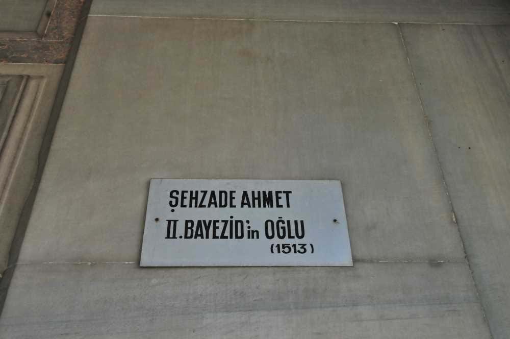 Yavuz Sultan Selim tarafından kardeşi Şehzade Ahmet için yaptırılmıştır. Sekiz köşeli ve önünde kemerli mermer girişi olan türbenin içi mavi beyaz bordür çinileri ile altıgen firuze ve lacivert levha çiniler ile süslüdür. Şehzade Ahmed’in annesi ve II.Beyazid’in eşi Bülbül Hatun da bu türbede yatmaktadır.