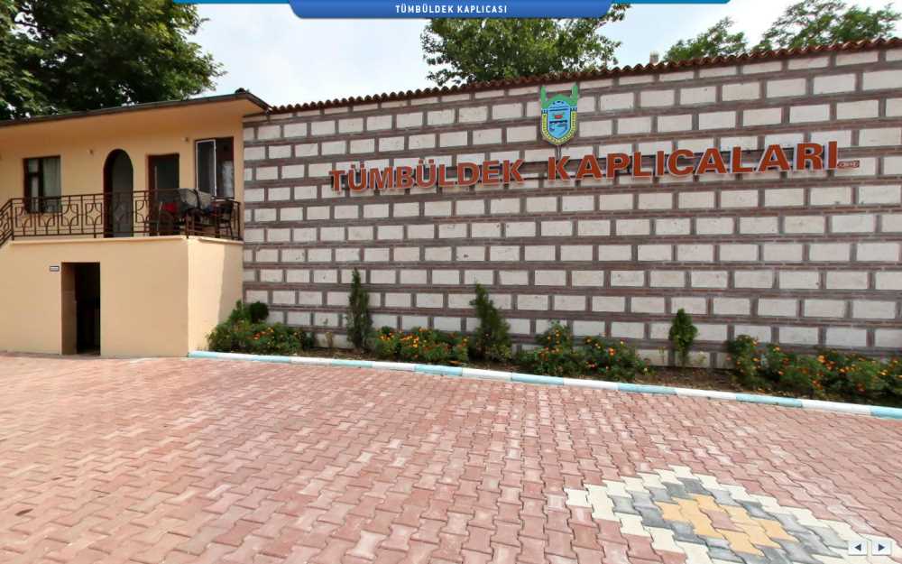 Tümbüldek Kaplıcaları'nın çok eski yıllardan beri varlığını sürdürdüğü bilinmektedir. Nitekim Akarca'dan 2 kilometre uzaklıkta bulunan Bahariye Köyü'ndeki tarihi hamam kalıntıları buna işaret etmektedir. Harabelerden sökülen sütunlar, 1895'te Tümbüldek Hamamı onarılırken kullanılmıştır. Kaplıcanın soğuk kaynağı 21°C, sıcak kaynak suyu ise 50°C’dir. Her ikisi de kimyasal yönden aynı özellikleri taşır. Romatizma başta olmak üzere birçok hastalığa iyi geldiği inanılan Tümbüldek Kaplıcaları, aynı zamanda bir mesire yeri olarak da kullanılmaktadır.