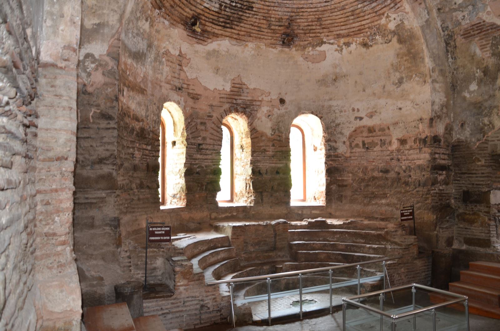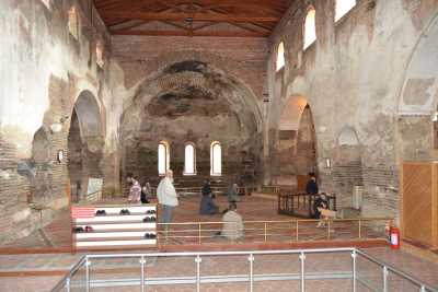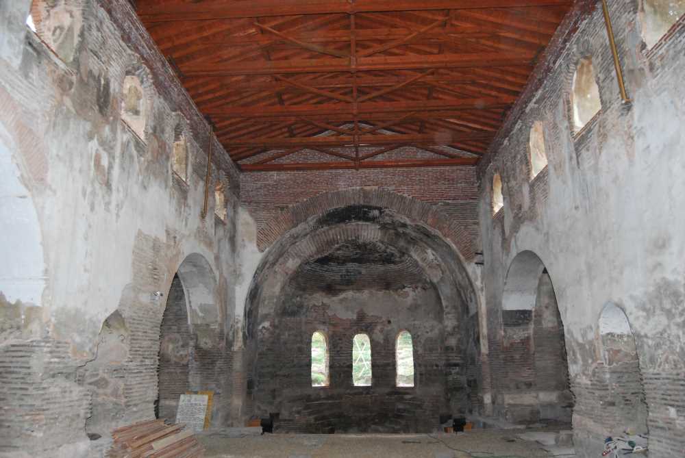 Birinci Dönem Yapısı: Olasılıkla 4'üncü - 5'inci yüzyıllar arasında, Roma Çağı'na ait bir (gymnasium)'un taş temellerine oturulmuş tuğla duvarlı bir bazilikadır (Erken Dönem Kilisesi). Kuzey ve güneyinde, taş temeller üzerinde görülen tuğla duvarlar bu dönemden kalmadır. Harç tabakası kalın ve kullanılan tuğlalar iridir. Apsisin iç kısmında da aynı teknikle örülmüş duvarlar bulunmaktadır. Apsisin dış kısmının ilk yapıda üç yüzeyli olduğu ortaya çıkmıştır ki, bu da erken dönem yapılarında görülmektedir. Ana yapıda, batıdan itibaren üç giriş ile üç nefli naosa geçilmektedir. Orta nefin yan neflerden dokuz sütun ile ayrılmış olduğu sanılmaktadır. Doğudaki apsis üç yüzeylidir ve bu dönemde posthophorion hücrelerine rastlanmaktadır.