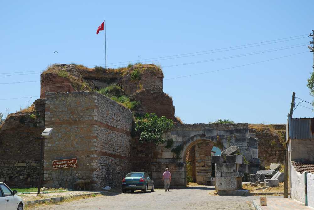 İstanbul Kapı: Kentin kuzeyinde yer alan İstanbul Kapısı, üç ayrı kapıdan oluşmuştur. Kente dışarıdan girişte esas sura ait olan kapı ile en içteki kapı arasında oval bir avlu bulunur. Dışarıdan girişte ilk kapı ön sura ait olup, iki yanında yarım silindirik kapı kuleleri vardır. Kapı, kuleleri birleştiren dikdörtgen surun tam ortasında yer alır; söveleri, granit sütunlardan oluşturulmuş, üzerine de bir granit sütun yerleştirilmiştir. Bu sövelerin üzerinde yere alan büyük kemer, aslında köşe duvarları üzerine oturmakta olup, söve ile kenar arasındaki boşluk doldurularak kapatılmış bulunmaktadır. Bu ikinci kapının yanında bulunan esas sura ait kuleler üstte ikinci katı oluşturmaktadır. Bunlarda, kubbeli birer hücre bulunmaktadır. Kapının üzeri, içte ve dışta olmak üzere kemelerle birbirine bağla bağlanmıştır. Avlunun sonunda düzgün kesme taşlardan yapılmış üçüncü bir yapı vardır. Bu kapı söveleri üzerinde yüzleri dışarı dönük iki Medusa başı görülür. Bunlar kenti kötü ruhların etkisinden korumak için konulmuşlardır.