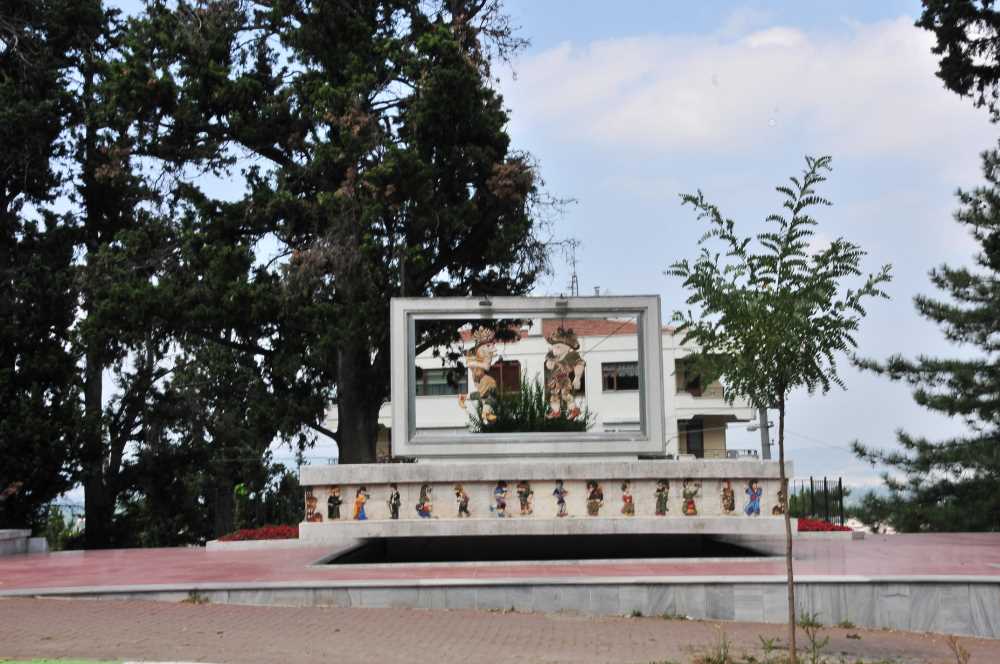 14.YY'da bir caminin yapımı sırasında nükteli sohbetleri ile işçileri işten alıkoydukları gerekçesiyle Sultan Orhan tarafından öldürtülen Karagöz'ün ve onun ardından ölen Hacivat'ın anısına ilk olarak 1950 yılında üzerinde basit figürlerin yer aldığı bir pano şeklinde yaptırılmıştır.1981'de Belediye'nin sipariş vermesi üzerine sanatçı Gönül Akıncı tarafından günümüzdeki şekliyle düzenlenmiştir.Şeyh Küşteri tarafından 14. yüzyılda Karagöz ve Hacivat'ın perdede bir gölge oyunu olarak canlandırılmış, böylece Karagöz ve Hacivat ; gölge oyununun iki önemli siması olarak ünlenmiştir. |