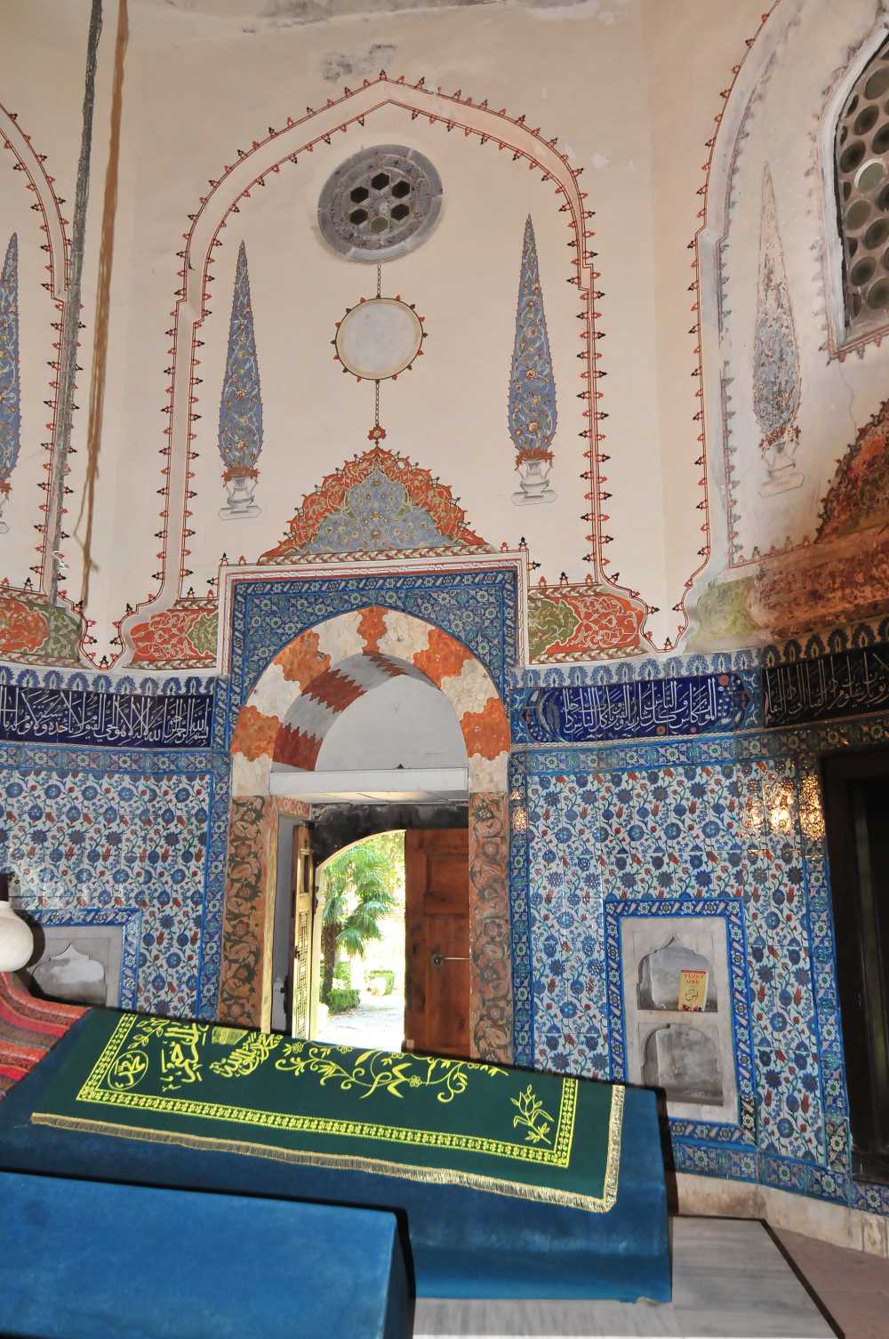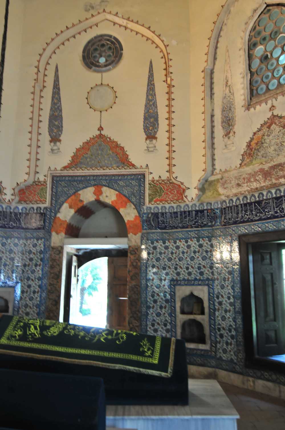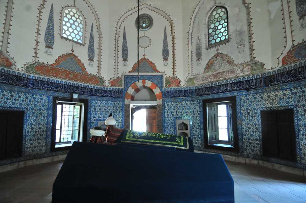 Taş ve tuğla malzemenin bir arada kullanıldığı sekizgen gövdeli yapı, sekizgen kasnağa oturan, dıştan kurşunla kaplı bir kubbe ile örtülüdür. Giriş kapısı mermer sövelidir. İçeride beden duvarları 3,00 metre yükseklikte, beyaz zemin üzerine karanfil ve zambak motifleri ile bezenmiş XVI. yy. en nefis dört köşe çinileri ile kaplıdır. Bu kaplama yüzey kıvrık dallardan oluşmuş bir şeritle çevrilmiştir. Tabanı kare tuğlalarla döşelidir. |
