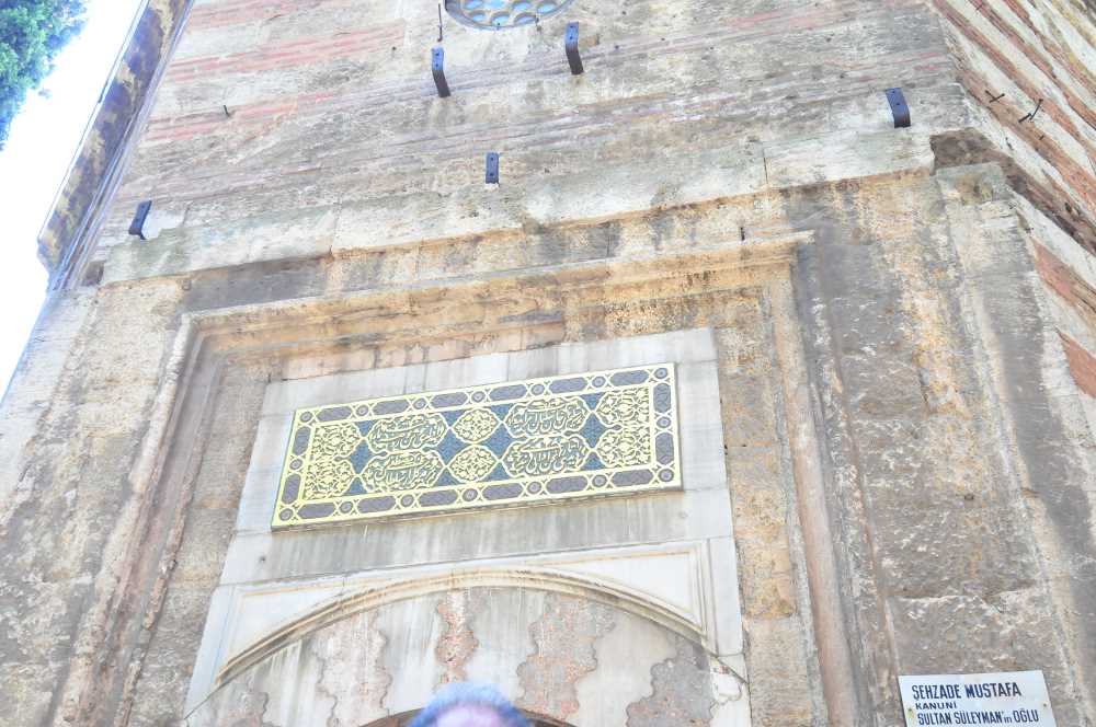 Muradiye Mahallesi'nde II. Murat ve Alaattin türbesinin güneybatısında bulunan türbenin, Kanunu Sultan Süleyman'ın Konya Ovasında boğdurduğu oğlu Mustafa için Yavuz Sultan Selim tarafından yaptırıldığı kapı üzerindeki mermerden 0,15 x 0,30 metre boyutlarındaki iki satırlık kitabeden öğreniyoruz.