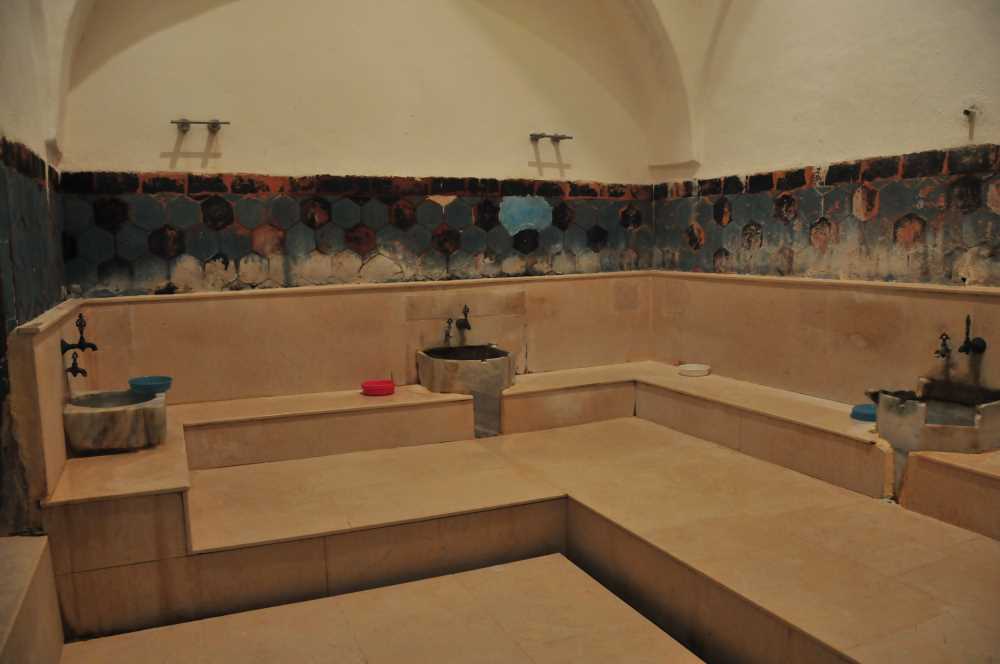 Yeni kaplıca'da sıcaklık kısmının ortasında büyük bir havuz bulunmaktadır. Sıcak su, aslan ağzı şeklinde bir taştan ufak bir havuza, oradan da büyük bir havuza akmaktadır. Aslan ağzının iki tarafı mozaik, bütün duvarlar ise çini kaplıdır. Çini ve kurnalar Timurtaş Paşa Hamamı'ndan satın alınarak kullanılmıştır. Ilıklık ve sıcaklık arasında, havuza çok sıcak su aktığından "Eşek terleten" adı verilmiştir. Kagir binaya sonradan eklenen ahşap binalarda otel odaları yer almaktadır. |