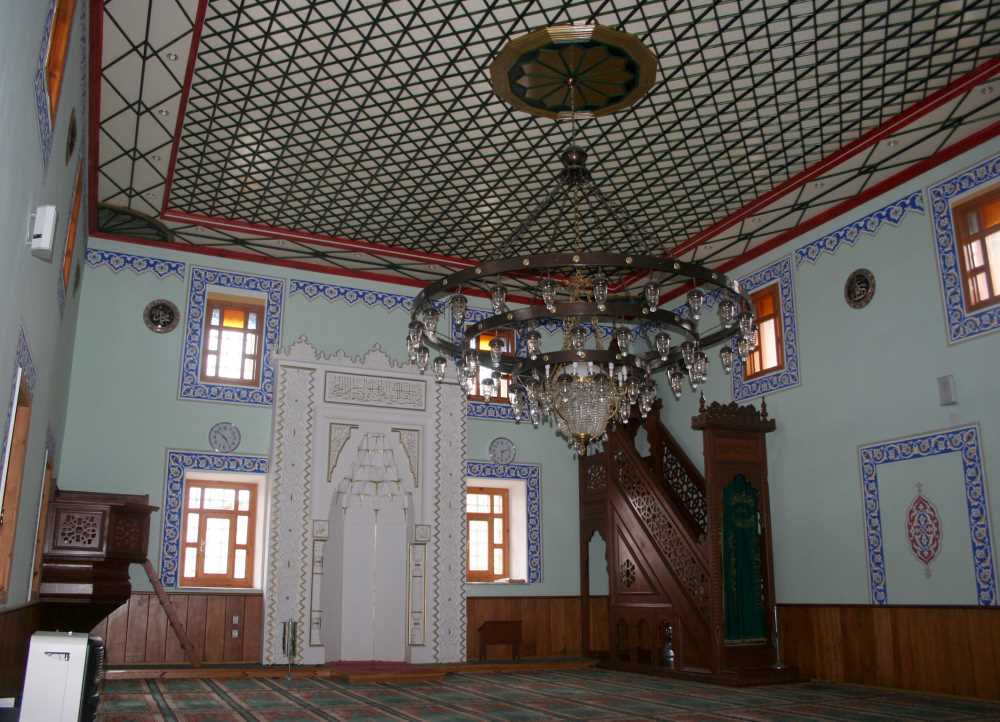 Dikdörtgen planlı olan cami, kesme ve moloz taştan yapılmış, kırma çatısı Marsilya tipi kiremitle kapatılmıştır. Düz ahşap tavanı çıtakari tekniğinde baklava ve üçgen motiflerle bezenmiştir. Tavan göbeğinde 12 kollu yıldız motifi vardır. Alçı işi olan mihrabı mukarnaslı ve bitkisel bezemelidir. Ahşap kadınlar mahfili altta ve üstte dörder adet ahşap dikme üzerinde taşınmakta ve buraya ahşap bir merdivenle çıkılmaktadır. Son cemaat yeri üç adet dikdörtgen pencere ile aydınlanmakta ve buraya çift kanatlı ahşap kapıdan girilmektedir. Son cemaat yerinin üst katının ön cephesi açıktır. Dikdörtgen ahşap pencereler demir parmaklıklıdır. |
