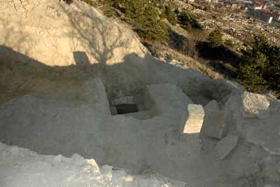 Çankırı şehir merkezinin kuzeyindeki tepenin üzerinde, Tarihi Çankırı Kalesinin doğu eteklerinde, günümüzde mezarlık olarak kullanılan Sarıbaba mezarlığının kuzey-kuzeybatısındaki küçük bir tepenin üzerindeki düzlükte yer alan tarihi mezarlık sahası, Çankırı Kalesine yakınlığı, konum ve ortaya çıkan mezarlar ile yüzeyde rastlanan bazı objelerden İlk ve Orta Çağda Kalede ikamet edenler tarafından Mezarlık alanı olarak kullanıldığı anlaşılmaktadır. Ortaya çıkan mezarlardan birinde kesme taştan yapılmış 70 x 50 cm ölçülerinde ağızın devamında daha büyük boyutlarda ve tahrip edilmiş vaziyettedir. Diğer mezar; Kesme taş bloklardan yapılmış şu anda taş bloklar ve kemikler dağınık vaziyette. Üçüncü mezar ise: 100 x 60 cm ölçülerinde kayaya oyularak yapılmış çok daha önceleri açılarak tahrip edildiği tespit edilmiştir. |