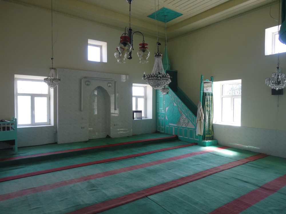 Meyilli bir arazi üzerine kagir olarak inşa edilmiş cami, kuzey güney doğrultusunda dikdörtgen planlıdır.marsilya kiremit kaplı kırma çatısı ahşap saçakla sonlanmaktadır. Beden duvarları sıvalı ve boyalı olup, köşebentleri ile pencere söveleri şaşırtmalı teknikle yapılmış kesme taşlarla vurgulanmıştır. Caminin minaresi yoktur. Yapı,doğu,batı ve güney cephelerinde bulunan ikişer adet alt, birer adet üst pencere ile aydınlanmaktadır. Kuzey cephesi sağırdır. Tüm pencereler dikdörtgen kesitli ve PVC doğramalıdır.Caminin kuzeydoğusuna sonradan yaklaşık olarak caminin yarısına kadar yükseklikte moloz taş örgülü sac ile kaplı beşik çatılı bir yapı inşa edilmiştir. Camiye bitişik vaziyette olan bu yapı abdest alma yeri ve ayakkabılık olarak düzenlenmiştir.Bu mekandaki kapı ile ayakkabılığa, ayakkabılıktan da harime geçilmektedir.Tahta döşemeli harimin üzeri ahşap çıtalı tavan ile örtülüdür. Tavanın ortasında kare biçimli bir göbek ve bu göbeğin dört köşesinde bu göbekle aynı biçimli birer adet daha göbek bulunmaktadır. Bu göbeklerin tümünün içi ortada yıldız ve kenarlarında çiçek motiflerinden oluşan basit bir süsleme ile bezelidir.Harim duvarları kuzey, doğu ve batıda zeminde yaklaşık 1 m yüksekliğe kadar güney duvarda ise mihrapla birlikte, mihrabın tepe noktasına kadar fayansla kaplanmıştır.Üzeri fayansla kaplanmış olan mihrap yarım daire nişlidir. Güneybatı köşesindeki minber ile güneydoğu köşesindeki vaaz kürsüsü ise ahşaptır.Her ikisi de sanatsal açıdan niteliksizdir.Harimin kuzey tarafında, harimin kuzeybatısından çıkılan ahşap kadınlar mahfeli yer almaktadır. İkisi de yan duvarlara bitişik,dördü ortada serbest olmak üzere toplam 6 adet ahşap destekle taşınan mahfelin önü ahşap parmaklıklı olup,orta bölümü harime doğru yuvarlak çıkmalıdır.Kadınlar mahfelinin üzerini örten tavanın ortasında, buraya başka yerden getirilmiş olması muhtemel,iç kısmı geometrik geçmelerle bezeli daire biçimli bir göbeği çevreleyen kare biçimli bir göbek bulunmaktadır. Sözü edilen göbeğin üzeri boyanmıştır. |