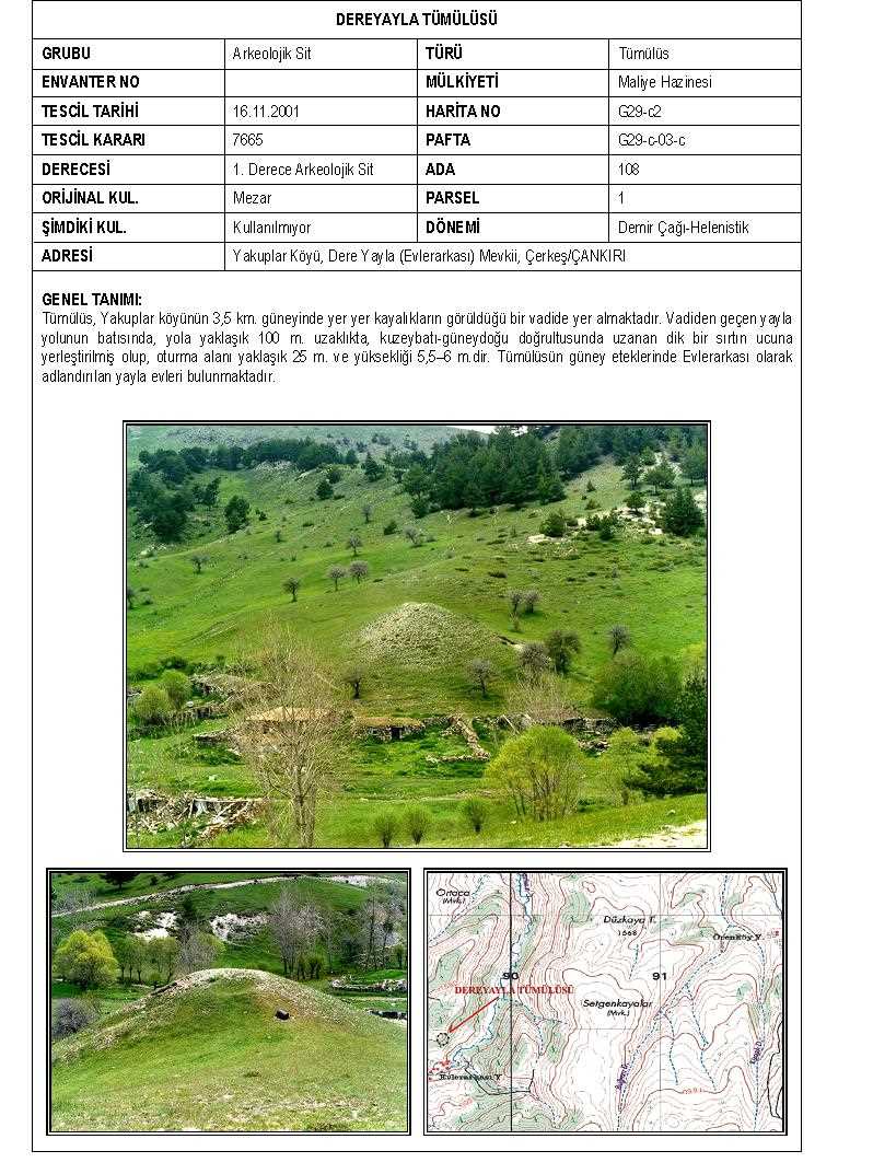 Yakuplar Köyü, Dere Yayla (Evlerarkası) Mevkii, Çerkeş/ÇANKIRI |