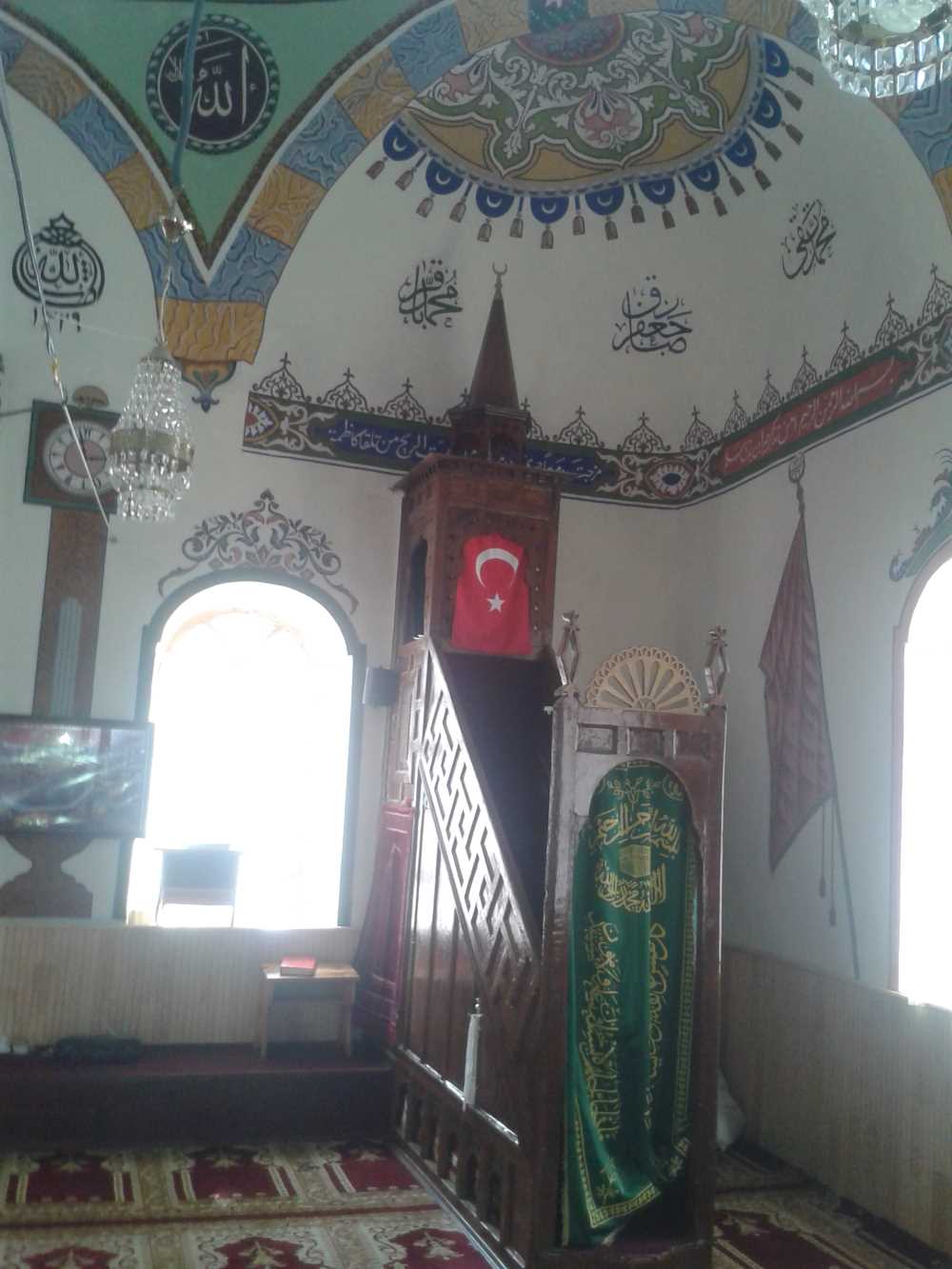 Boyuna dikdörtgen planlı, kubbeli, kesme taş kemerli kapı ve pencereleri olan, duvarlarında ve kubbede bol süsleme bulunan bir camidir. Eğimli arazi üzerinde yer alan boyuna dikdörtgen planlı caminin kuzeyindeki kısa merdivenle son cemaat mahalline çıkılmaktadır. Kuzeyde üç tarafı açık, ortasında süsleme göbeği olan ahşap saçaklı son cemaat mahalli bulunmaktadır. Kuzey cephenin tam ortasında kesme taştan, kemerli cümle kapısı vardır. Kapının iki yanında ve üstünde kesme taştan, kemerli pencereler bulunur. Cümle kapısının kilit taşı kabartma bezemelidir. Kapının ve pencerelerin kilit taşları kemerden biraz dışa çıkıntılıdır. Cümle kapısının üstünde ortada yer alan pencerenin alt kenarında kademeli silmelerden oluşan taş korniş yer alır. Caminin beden duvarları saçak hizasına kadar moloz taş, duvar köşeleri ve pencere kenarları kesme taştır. Ortadaki sekizgen kasnak, kubbe ve kubbe geçişleri bağdadi olarak yapılmıştır. Kubbe üzeri kırma çatı ile kapatılmış olup Marsilya tipi kiremit ile örtülüdür. İç ve dış duvarlar yöresel kireç sıva ile sıvanmıştır. Kubbe kenarlarında yedi adet kemerli ahşap şebekeli ve vitraylı pencereler bulunmaktadır. Kubbe geçişleri tromplarla sağlanmıştır. Kubbe merkezi, pencere üstleri, duvarlar, kemer ve tromplar bitkisel ve geometrik, çeşitli renklerde motiflerle bezenmiştir. Kubbe eteğini Kur'an-ı Kerim'den ayet yazılı bordur dolanmaktadır. Ahşap kapı ile harime girilmektedir. Harimin doğu ve batı duvarlarında karşılıklı alçı şebekeli ve vitraylı kemerli pencereler vardır. Duvarlarda vazo içinde çiçek, gemi, karşılıklı sancak, güney duvarında mihrabın iki tarafında ayaklı saat resmedilmiştir. Minberi düz ahşaptandır. Mihrabı alçıdan ve yarım silindirik nişlidir. Mihrabın taç kısmında kabartma olarak yapılmış vazo ve bitkisel motifler vardır.Caminin kuzey batısında tek şerefeli, kesme taştan minaresi vardır. Minare 1962 yılında yapılmıştır. Caminin dış duvarında (mermer levhada), yeni yazılmış 1905 tarihi; iç güney duvarında ise 1329 H. (1913 M.) yer almaktadır. |
