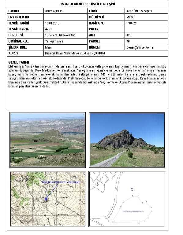 Hisarcık Köyü / Kale Mevkii / Eldivan/ÇANKIRI |