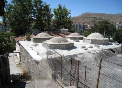 Alibey Cami’nin güneybatısında olan hamam XVII. yy.’da Çankırı Mütesellimi Ali Bey zamanında (1609) yapılmıştır. Yapı güney-kuzey aksına dik olarak uzanan bir çifte hamamdır. Batıda erkekler bölümü, doğuda ise kadınlar bölümü vardır. Her iki hamamında soyunmalıklar bölümü özgünlüklerini yitirerek tamamen betonarme olarak yapılmıştır. Bu muhdes soyunmalık bölümlerinden dar fakat yüksek açıklıklardan dikdörtgen planlı ılıklık bölümlerine geçilmektedir. Kapı açıklıkları sivri ile yuvarlak arasında bir kemere sahiptir. Ilıklık bölümlerinin orta bölümleri birer kubbe ile örtülmüştür. Kebeye geçiş pandantiflerle sağlanmıştır. Ilıklıkların doğu ve batı bölümleri erkekler bölümünde tromplu yarım kubbelerle, kadınlar bölümününki ise kalın bir kemeri andıran beşik tonozla örtülmüştür. Çünkü adınlar bölümünün ılıklık ve sıcaklık bölümleri erkekler bölümüne göre daha küçüktür. Kubbelerin ortalarında sekizgen birer ışıklık, bu sekizgenin etrafında ise yuvarlak ışıklıklar vardır. Ayrıca alt kısımlarda her bir cepheye gelecek şekilde, altta ikişerli sekizgen üstte yuvarlak bir tane olmak üzere üçerli küme oluşturan başka ışıklıklarda bulunmaktadır. |