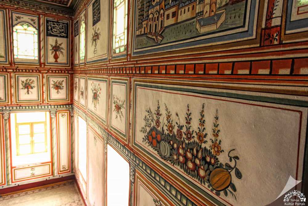 Cami, süsleme bakımından oldukça zengin özellikler taşımaktadır. Duvarlar boydan boya panolar halinde çeşitli ve renkli resimlerle bezenmiştir. Bu resimlerin konuları arasında; vazo içinde bitki ve çiçekler, avlu içinde cami, bir kap içinde ve boşlukta duran meyve resimleri bulunmaktadır. Ayrıca camide yazı da süs unsuru olarak kullanılmıştır. Caminin düz ahşap tavanı ve minberi stilize bitki motifleriyle süslenmiştir. Harim duvarları ve tavanında yer alan süslemeler, döneminin en gözde örnekleri arasındadır.