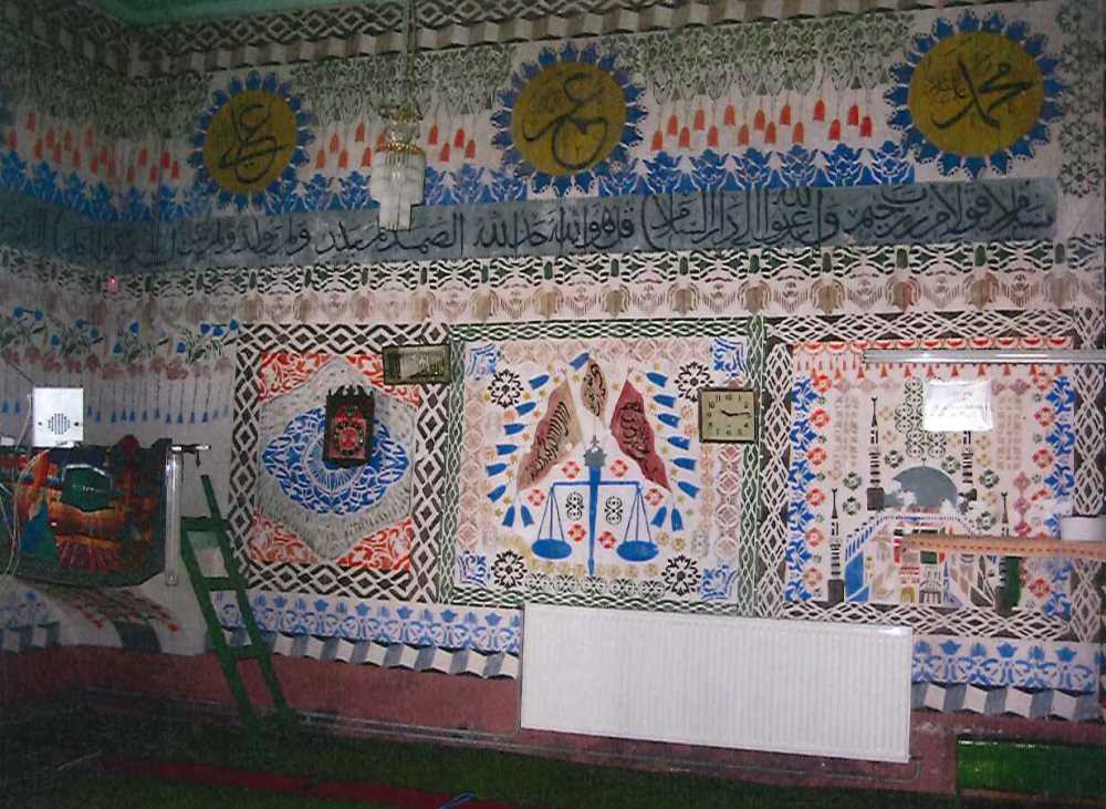 Çal İlçesi, Belevi (Kasabası) Mahallesi, köy meydanında yer alan cami Tek mekanlı, ahşap direkli, kareye yakın dikdörtgen planlıdır. Düz örtülü ibadet mekanı ile iki ahşap direğin taşıdığı son cemaat yeri, kuzeybatı köşesinde minaresi, kuzeydoğu köşesinde ise küçük bir deposu bulunan caminin duvarları beyaz sıvalı olup, kırma çatılıdır. Caminin hariminde, güney duvarın ortasında yer alan basık kemerli mihrap nişi, güneybatı köşede ahşap minber, güneydoğuda ise vaaz kürsüsü yer almaktadır. Caminin duvarlarında mizan betimlemesi, mihrabın hemen yanında dört minareli bir camii kompozisyonu, çiçek ve perde kompozisyonları yer almaktadır. Caminin kadınlar mahfili sonradan yapılmıştır. Mihrap kemerinin üzerinde üç adet ibrik tasviri ile geniş bir madalyon içine “Ali” yazısında son üç harfin uç kısmının zülfikar şeklinde verilmesi, Acıpayam / Yassıhöyük’deki Eski Camii’nin süslemelerini hatırlatmaktadır. |