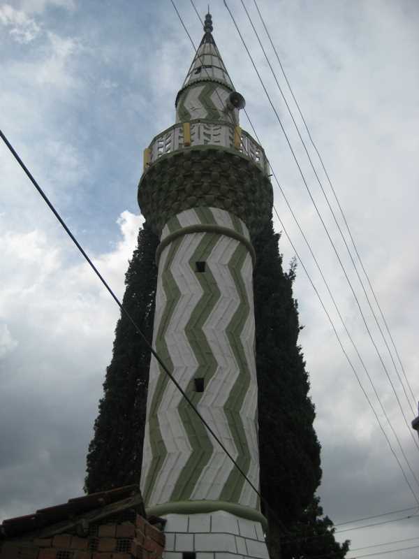 Son cemaat yerinin önünde demir saç örtülü ve yine demir doğrama kapı ve pencereleri olan kapalı bir giriş bölümü vardır. Yapının hemen önünde yer alan ve bahçe duvarının içinde bulunan çokgen piramidal kaideli ve silindirik gövdeli tek şerefeli ve mukarnas süslemeli minaresi vardır. |
