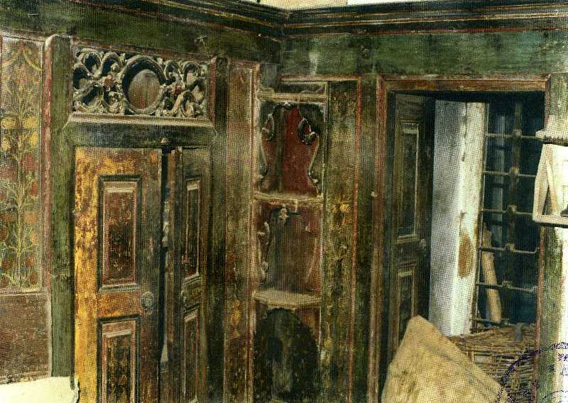 Denizli İli, Çal İlçesi, Ortaköy (Kasabası) Mahallesi’nde bulunmaktadır. Tarihi 18. yy sonu ve 19. yy başlarıdır. U formlu bir plana sahip olan ev iki katlı olup, zemin katı depo olarak kullanılmıştır. Ana duvarlarda taş örgü, aralardaki duvarlarda ise bağdadi yapı tekniğiyle yapılmıştır. Batı bölümünde üst katta kalan iki odanın üzeri oluklu sac ile kapatılmıştır. Diğer bölümü ise yıkılmış durumdadır. Ayakta kalan evin iki odası ahşap oyma –kakma kalem işi, duvar resim işçiliğinin nadir örneklerini görmek mümkündür. Kapı ve dolaplar geçme tekniği ile çok ince bir işçilik gösterilerek yapılmıştır. Dolaplarda ve üst pencerelerde kündekari oyma işçiliğinin güzel örneklerini görmek mümkündür. Duvarlar çok renkli olarak, bitkisel motifler, cami ve yelken resimlerle dekore edilmiştir. Tavan küçük kare ahşaplar ve üzerine atılan kare çubuklardan oluşturulmuş olup ortada büyük kare içinde yuvarlak göbekli bölüm rozet yapraklarının oluşturduğu desen ortasında yine ahşaptan yapılmış, çıkıntılı yapraklar ortasında ahşap nar motifi yapılmıştır. Tavan tamamıyla kalem işi olarak çok renkli bitkisel bezemelerle dekore edilmiştir. |