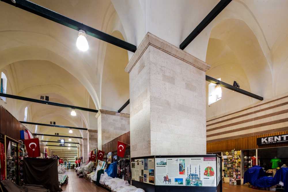 Eski Camii'nin güneyinde yer alır. Dikdörtgen planlı olan bir kapalı çarşıdır. Üst örtüsü 14 kubbe ile sağlanmıştır. |