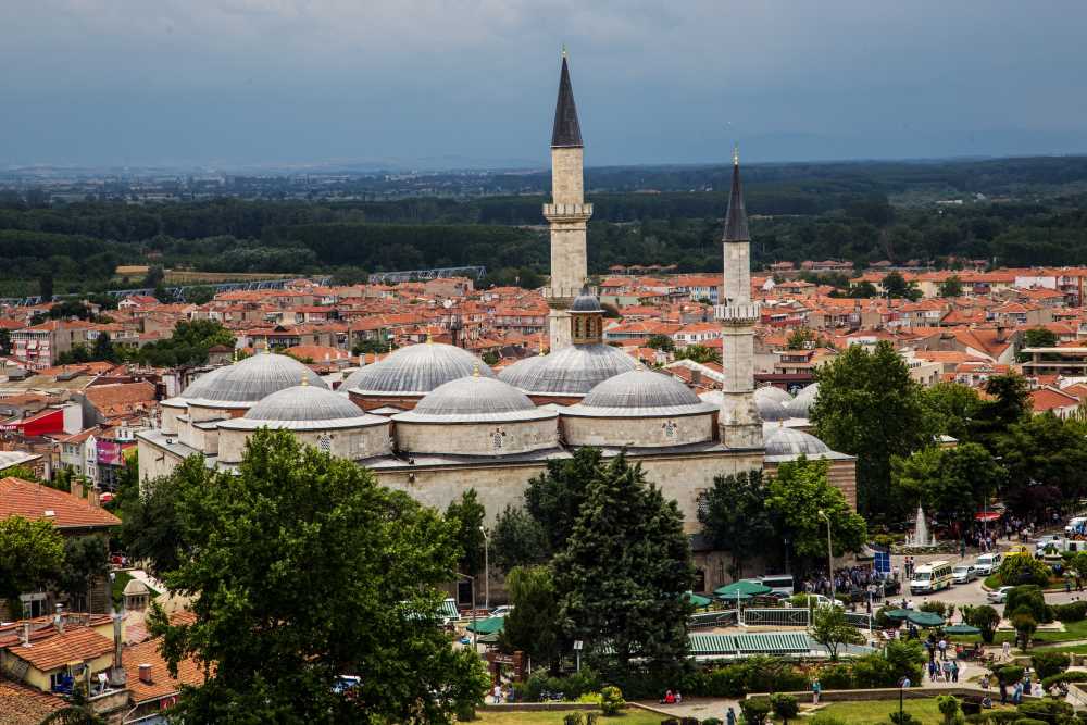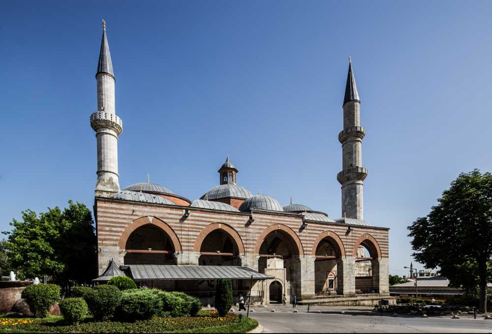 Edirne'de Osmanlı'dan günümüze ulaşmış en eski antsal selâtin camidir. Fetih camisi olması bakımından protokolde de bir yere sahiptir. Osmanlı padişahlarından Il. Ahmet ve Il. Mustafa'nın kılıç kuşanma törenleri bu camide yapılmıştır. Kesme taşla inşa edilen kare planlı cami, çok kubbeli camiler grubuna girmektedir. 13,50 m çapındaki 9 kubbeden oluşan örtü sistemi yanlar beden duvarlarına, ortada 4 fil ayağına oturmaktadır. Kıble aksındaki iki kubbe sekizgen, diğerleri yuvarlak kasnağa oturmaktadır. Kasnaklar dört yönden pencerelerle donatılmıştır. Kuzeybatı yönündeki orta kubbe aydınlık fenerine sahiptir. Caminin iki minaresinde biri kuzey köşesinde beden duvarı üzerine, tek şerefeli olarak inşa edilmiş, diğeri batı köşesine müstakil olarak inşa edilmiştir. Çelebi Sultan Mehmed tarafından inşa ettirilen bu minare, daha uzun olmakla birlikte iki şerefeli ve iki merdivenlidir. Ayrıca kaidesinde bir de çeşme bulunmaktadır. Caminin cephelerinde iki sıralı pencere düzeni görülmektedir. Yan cephelerde birer kapı ve dokuz pencere vardır. Kıble yönünde on iki pencere açılmıştır. Kuzeybatı cephesinde tek sıra halinde dört pencere bulunmaktadır. Caminin beş gözlü son cemaat yeri yanlarda ikişer tonoz, ortada yükseltilmiş kubbeyle örtülüdür. Payeler kesme taş, kemerler almaşıktır. Orta göz içine bir kapı yerleştirilmiştir. Kapı üzerinde son cemaat yerinin inşa kitabesi bulunmaktadır. Kapının soluna abdest muslukları sıralanmıştır. Kuzey köşesinde bir sebil yer alır.
