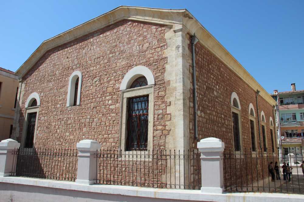 1852 yılında inşa edilmiştir. Yapının giriş kapısı üzerinde kitabesi bulunmaktadır. Kitabenin sağında ve solunda İtalyan üslubunda iki vazo ve içinden çıkan güller kitabeyi sınırlandırmıştır. Yapının kitabesi dikdörtgen şeklindedir. Kitabenin üstünde tanrıyı simgeleyen klasik tarzda bir güneş motifi yer alır. Madenden yapılmış giriş kapısı üzerinde altı tane elips madalyon içlerinde rozet taşırlar. Bu madalyonlar girland biçimindedir.Kapının sınırlandığı noktada, klasik tarzda bezemeli küçük köşe payeleri yer alır. Kapının hemen üzerinde çelenkler içinde yer alan iki kol ve bu kollar üzerinde İsa'nın motifi haç görülür.Bu da tanrıyı simgelemektedir. Yapıya iki basamaklı merdivenle girilir.Girişin en üstünde İtalyan hacı yer alır. Bazilika üzerinde yapılmış olan kilisenin cephesi tapınak cephesi gibi klasik tarzda düzenlenmiştir.Girişin ön cephesinde demir korunaklı iki pencere bulunur.Bu hücreler kule şeklinde yükselmektedir.Pastaforion hücresinin doğu ucunda birer tane demir korunaklı pencere yer alır.Güney pastaforion hücresinde dışarıya geçit veren bir kapı bulunur.Bu kapıdan hemen yanındaki müştemilata geçiş sağlanır.Yapının bahçesinde bulunan kitabeden anlaşıldığı kilise, Katolik kilisesidir.Kilisede süsleme unsuru olarak fresko ve mozaikler kullanılmıştır.Apsis dıştan düz bir duvarla örülmüş ve bu düz duvarın köşelerinde birer İtalyan haçı bulunmaktadır. |