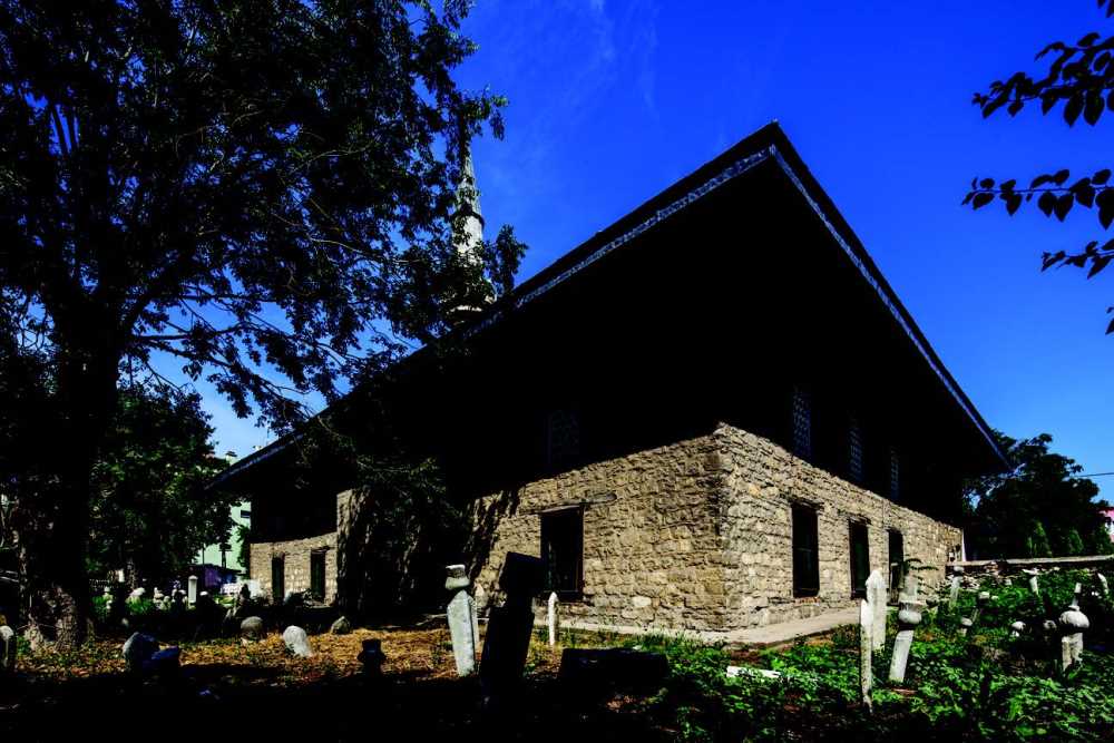 Avluya üç kapıdan girilir. Kapılardan ikisi batıda, biri doğudadır. Batıdaki üst kapıda Abdurrahman Hibri'nin yazmış olduğu mermer kitabe vardır. Kitabede caminin, 1443 yılında II. Murad tarafından yaptırıldığı, 1621 yılında II. Osman tarafından onartıldığı yazılıdır. Bugün 22x19 metre boyutlarında dikdörtgen planlı olan caminin aslı tabhaneli idi. Tabhane odaları daha sonra kaldırılmıştır. Cami hatılsız moloz taşla inşa edilmiştir. Cami ilk örtüsünün kubbe olduğu tahmin edilmektedir. 1621 yılında, Genç Osman döneminde yapılan onarım ile kubbenin yerine kurşun kaplı piramidal çatı kullanılmıştır. Son cemaat yeri 3.80x22.20 ölçülerinde, 12 ahşap direk üstüne oturan alçak bir sundurmadan oluşmaktadır. Sonraki onarımlarında direkleri kaldırılmış, yerine duvar örülmüştür. Minaresi, kesme taşla yapılmıştır. Son cemaat yerinin kıble aksındaki ön giriş kapısı, batı kapısı ve kadınlar kapısı olmak üzere caminin üç kapısı vardır. Caminin giriş kapısının karşısında avlu içerisinde piramidal biçimli bir şadırvan yer almaktadır. Harim kareye yakın bir plana sahiptir. Çatı içerden ahşap tavanlıdır. İç yükseklik 5.71 metredir. |