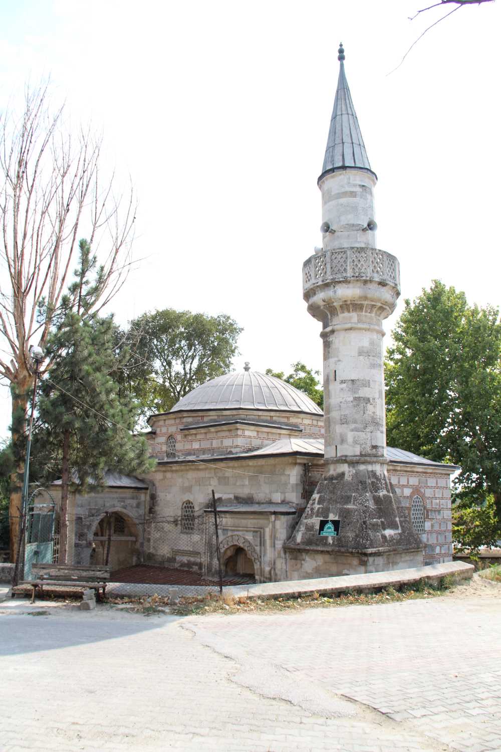 Cami, Bir avlu içinde yer almaktadır. Avlu zemin yoldan 2.2,5 m. aşağıdadır. Bahçede haziresi vardır. Dikdörtgen planlı caminin kuzeydoğu cephesi yalnızca kesme taşla inşa edilmişken diğer cepheleri taş ve tuğlayla almaşık düzende inşa edilmiştir. Güneybatı ve güney doğu cephelerinde, iki altta ve iki üstte olmak üzere dörder pencere açılmıştır. Kuzeybatı cephesinde yalnızca iki üst pencere vardır. Kuzey doğu cephesinde üç alt pencere iki üst pencere bulunmaktadır. Ayrıca kubbe kasnağında da her cephenin orta hizasına gelecek şekilde dört pencere açılmıştır. Kuzeydoğu cephesinin doğu ucunda camiye yaslı vaziyette çardak türbe vardır. Cephe ortasında görülen konsollar, bir sundurmanın varlığına işaret etmektedir. Cephenin kuzey ucunda cepheden dışa taşkın taç kapı yer almaktadır. Silme ile çerçevelenmiş taç kapının bordürlerinde kufi hat kalıntıları görülmektedir. Taç kapının, rumi kabarmalarla tezyin edilmiş sivri kemeri içinde üç dilimli dekoratif bir kemer daha vardır. Kapı içinde birbirine bakan, üç kenarlı birer niş yer almaktadır. Nişlerin, basit mukarnaslı ve yivli kavsarayla örtülüdür. Giriş aralığı mermerden basık kemerle örtülüdür. Basık kemerin hemen üzerinde üç satırlık Arapça inşa kitabesi bulunmaktadır. Caminin güney batı cephesinin batı ucunda, taçkapı ile aynı eksende bir giriş daha bulunmaktadır. Örtü sistemi; kıble yönünde, on iki gen kasnağa oturanbir kubbe ve gerisinde, giriş aksını örten bir tonozdan ibarettir. Taç kapının sağında camiden ayrı olarak, duvara yaslı vaziyette inşa edilen minarede kesme taş kullanılmıştır. Minareye giriş kürsünün doğu yüzü üzerindeki basık kemerli bir açıklıktan sağlanır. Kare planlı kürsüden gövdeye prizmatik üçgenli pabuçla geçilir. Gövdede, biri altta biri üstte olmak üzere kaytan silme iki bilezik yer almaktadır. Şerefeye geçiş bir dizi silmeyle sağlanmıştır. Yapının doğu cephesinde, taç kapı çıkıntısı ile türbearasında üç adet konsol bulunur. Dikdörtgen planlı harim iki bölümden oluşmaktadır. Giriş aksı ve ana mekân; yanlarda duvarlara ortada bir direğe basan iki kemerle ayrılmaktadır. Giriş aksı aynalı tonozla örtülü iken ana mekânı, prizmatik üçgenlerle geçilen kubbe örtmektedir. Giriş aksında, ahşap kadınlar mahfili vardır. Duvarlar, dökülmeye yüz tutmuş olması nedeniyle Edirne müzesine kaldırılan çinilerle kaplıydı. Duvardan hafifçe dışa taşkın olana mihrap, dikdörtgen kesitli ve mukarnas yaşmaklı bir nişe sahiptir. aslı çini kaplama olan mihrap zarar görmüş olacak ki üzerine, geometrik tezyinatlı alçı kaplanmış.