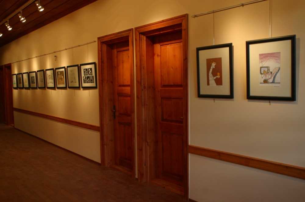 Zemin kat, kısa süreli kişisel ve karma sergilerin yapıldığı bir alandır. Araştırma ve uygulama çalışmaları ile kitaplık da yer almaktadır. Müzenin üst katında Türkiye dışındaki ustaların karikatürlerinin sergilendiği bir ana salon, başbakanların portrelerinin bulunduğu Portreler Odası, Eskişehirli Karikatür Ustaları Odası, Afiş Odası, Türk Karikatür Ustaları Odası bulunmaktadır. Bu odalar daimi olarak sergilenen eserlerden oluşmaktadır. Ayrıca önemli mizah dergileri, kitaplar, tabaklar, heykeller de sergilenmektedir. Müzenin küçük bahçesinin duvarları Turan Selçuk ve Tan Oral’ın metal malzemelerle yaptıkları karikatürlerle süslüdür.